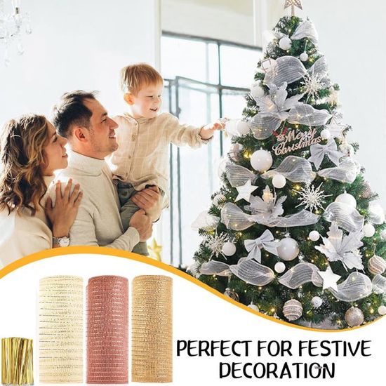 Décoration de vacances : conçue pour rehausser vos décorations festives comme les guirlandes et les arbres, créant une atmosphère accueillante lors des célébrations. Ruban 2 M Argent Or Rouge Ruban De Noël En Maille étincelante De 2 M De Long En Ruban Motif De Noel * Design à paillettes étincelantes : ornés de paillettes scintillantes, les rouleaux de tulle créent une atmosphère festive qui améliore toute célébration, ce qui les rend parfaits pour ajouter une touche de glamour à vos décorations. Pull de Noël en maille - Bleu - Kiabi - 14.00 * Taille : 2 m de long. Contenu de l'emballage : 2 rubans à tricoter de Noël. Ruban de Noël câblé de 4 po x 5 verges doré avec argent et or. Ajoutez ce magnifique ruban à n'importe quel arrangement, arbre de Noël ou comme accent élégant à vos projets d'emballage de cadeaux. Ce ruban est fait de polyester et comporte un bord câblé qui permet de se plier et de le façonner pour une décoration facile. Il mesure 4 pouces de large par 5 mètres de long. Mesure 4... Caractéristiques : *Nom de la pièce : rubans de Noël., *Matériau : tissu. * Pour des outils de bricolage polyvalents : facilement coupés à la longueur désirée, ces rubans sont le choix pour divers projets d'artisanat, vous permettant de libérer votre créativité et de personnaliser vos décorations comme bon vous semble. Matériau en polyester robuste : fabriqués à partir de polyester résistant aux déchirures, ces rubans sont conçus pour une durabilité et une utilisation répétée sans perdre leur charme. XINMILI Rouleau de ruban en maille étincelante de 2 m de long avec *Large gamme d'applications : parfaits pour une multitude d'utilisations, ces rubans peuvent embellir des vêtements, des accessoires, des paniers cadeaux, et plus encore, ce qui en fait un ajout polyvalent à vos fournitures de bricolage. Outil créatif : coupez facilement à la longueur de votre choix, vous permettant de personnaliser vos projets et de libérer votre potentiel créatif.