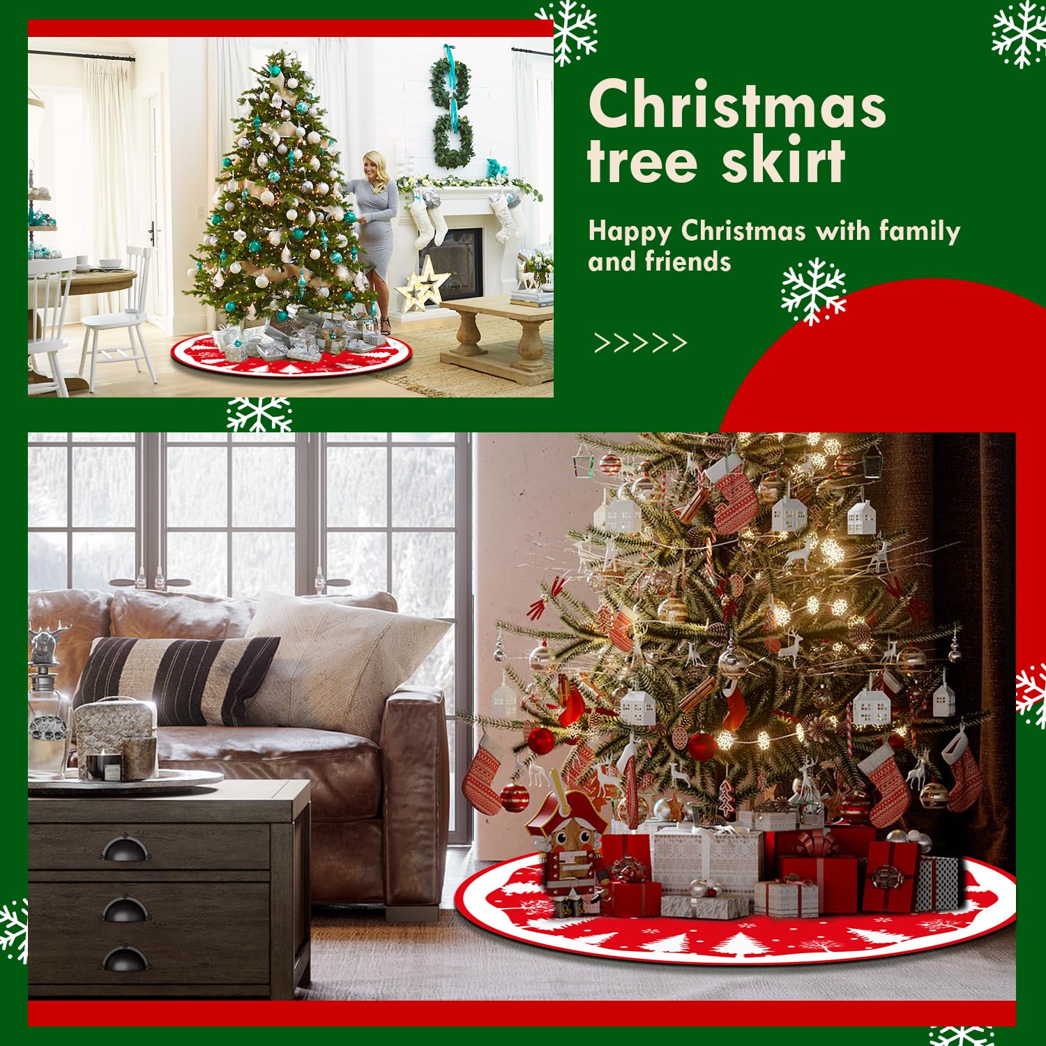 Tapis Sapin De Noel Blanc Druuzyl Jupe De Sapin Noël 92cm - Couvre-Pied Rond Pour Arbre Sapin Noel Couvre-pied de Sapin de Noël Cache Pied Jupe Arbre Décoration Couvre Pied de Sapin - HAOPYOU - Rouge - Rond - Décoration de Noël... Elle est entièrement confectionnée dans un tissu tricoté pur, doux et confortable au toucher, durable et de qualité supérieure, ce qui en fait le choix idéal pour vos décorations de Noël. 🎄 Design classique La combinaison classique du rouge et du blanc, associée à un motif de renne brodé à la main, confère à cette jupe un style simple et rétro. 🎄Réutilisable La jupe est dotée d'une ouverture qui permet de l'enfiler facilement au pied de l'arbre de Noël, ce qui facilite la personnalisation de la décoration avec divers accessoires. 🎄Jupe de sapin de Noël de qualité supérieure Cette jupe de sapin de Noël réversible est ornée d'une broderie raffinée sur le devant et d'un mélange de tissu non tissé et de peluche blanche au dos. 🎄Décoration polyvalente D'apparence élégante et festive, elle convient à la maison (salon, chambre à coucher), à l'extérieur (jardin) et aux lieux commerciaux (bars, hôtels, supermarchés, etc. ), et constitue la touche finale parfaite pour les décorations de Noël à l'intérieur et à l'extérieur. C'est également un cadeau de Noël attentionné à offrir à vos proches pour leur transmettre vos vœux de fin d'année. Cette jupe de sapin de Noël unique en son genre ajoute instantanément une atmosphère de Noël à votre intérieur et rend les fêtes encore plus chaleureuses. Jupe de Sapin Noël 92cm - Couvre-Pied Rond pour Arbre de...