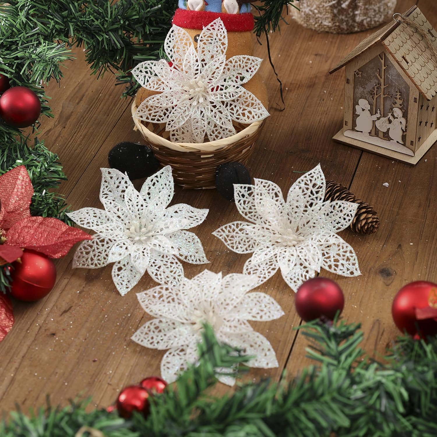 Matériau : plastique, polyester, résine, non-tissé, tissu Dimensions : 22 x 15 x 5 cm., Poids : 180 g., Remarques : 1., Les mesures étant prises à la main, les tailles indiquées peuvent varier de 1 à 5 mm., 2., En raison de différents facteurs, tels que la couleur réelle de l'article peut légèrement varier de celle de la photo en fonction des paramètres d'affichage et de luminosité de votre ordinateur. Elles attireront tous les regards sur votre sapin de Noël, couronne ou décoration d'intérieur Design creux tridimensionnel : le design creux unique à double couche donne aux fleurs une sensation vivante et respirante et une forme élégante. Également un excellent cadeau pour les amis et la famille pour Noël, Thanksgiving et autres vacances. Lot de 24 fleurs sans tiges - 7 cm - Orange Le lot contient : 24 fleurs de Noël artificielles irisées, fleurs dorées, soigneusement conçues en trois tailles de dégradé de couleurs : 8 cm, 10 cm et 15 cm, avec 8 fleurs chacune. Un superbe accroche-regard pour votre arbre, votre couronne ou votre décoration d'intérieur - La décoration de Noël parfaite., 3., Nœuds de Noël parfaits pour les pinces à cheveux, les étiquettes cadeaux, les décorations de table, les décorations de sapin de Noël, les fêtes, les mariages et les loisirs créatifs de Noël. Fleurs de Noël artificielles en argent lot de 5 décorations de Noël... Une petite remarque est incluse dans l'emballage : si la forme de la fleur se déforme facilement pendant le transport, la fleur lumineuse peut être restaurée par simple repassage à la vapeur et assure un plaisir durable Nom du produit : fleurs de Noël Spécifications: 1., Fleurs d'étoile de Noël scintillantes fabriquées en matériau durable de qualité supérieure avec un design multicouche et creux., Robuste et incassable. Ainsi, vous avez une liberté de conception maximale et pouvez créer la décoration festive parfaite Décoration Festive Mariage Nouvel An Décorations Noël Poinsettia Fleurs De Noël Poinsettia à Paillettes - Lot De 24 - Décorations Sapin Doré Rose Décoration Sapin Pailletée Lot Fleurs De Noël De beaux ornements suspendus au sapin de Noël peuvent être placés partout où vous le souhaitez et sont recouverts de paillettes, ce qui rend l'arbre plus attrayant Cette étoile de Noël artificielle réaliste adhère non seulement en toute sécurité aux branches, mais séduit également sous tous les angles par sa structure délicate et artistique