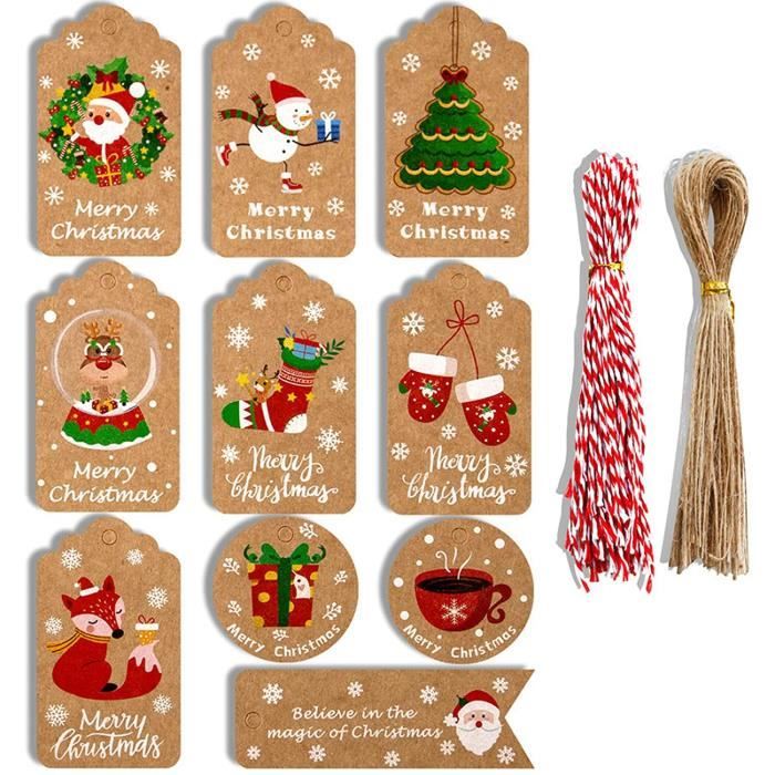 96 Pcs Étiquettes Cadeaux en Papier Kraft de Noël, Étiquettes Suspendues pour Arbre de Noël avec Ficelle de Jute de 9,8 Pouces pour Bricolage Étiquettes Papier Kraft pour Noël - Test et Avis étiquettes Sapin Noël Etiquette Noël,Étiquettes-Cadeaux De Noël,100 Pièces Cartes D Décoration Sapin étiquettes Avec Ficelle Spécification: Nom:Etiquettes cadeaux de noël en papier kraft Matériau:Papier kraft. Matériau:Les étiquettes de cadeau de noël sont en papier kraft de papier,belles et généreuses, avec des bords plats, difficiles à déformer et durables. ETIQUETTE ALIMENTAIRE,B4--Étiquettes'emballage cadeau de noël en papier... Contenu de l'emballage: 100x étiquettes 50x chaînes rouges et blanches 50x corde de jute Facile à utiliser: Notre étiquette de noël a un trou rond pressé à la machine à travers lequel nous pouvons facilement attacher une corde. Contenu de l'emballage:Incluez 100 pièces tags-cadeaux de noël,50 chaînes rouges et blanches et 50 corde de jute,suffisamment de quantité pour votre utilisation quotidienne. Différents motifs:Ces étiquettes en papier kraft de noël sont conçues dans de riches motifs de noël,créent une ambiance de noël heureuse.