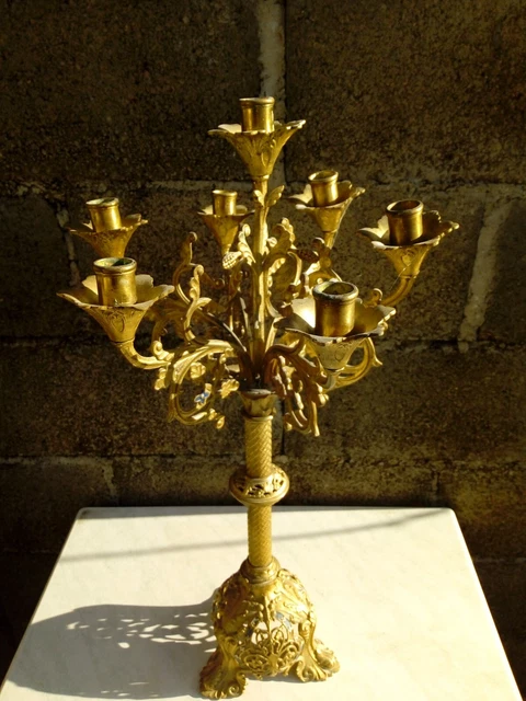 Bougeoir 5 Feux Fer Forgé Chandelier Candélabre De Table 5 Feux Bougeoir Porte Bougies Droites à Candélabre Table Fer Forgé Décorez votre table avec ce bougeoir sur pied à poser. En fer, ce chandelier est constitué de trois branches pouvant acceuillir des bougies couleur blanche et patinée façon à l'ancienne, ce superbe candelabre arbore de jolis motifs floraux ainsi qu'un pied travaillé. Il saura habillé vos plus belles tables par son charme. Cette réplique de bougeoir ancien pourra également... Grand candélabre 5 feux bronze marbre griotte feuillage coq Dimensions complémentaires:Diamètre intérieur des bougeoirs 2,2cm Chandelier Bougeoir Candelabre Noir: Chandelier À 5 Branches De 122 Cm Pour Piliers - Porte-Bougies De Sol Gothique Pour Salon Salle À Manger Halloween Noël... Marque: L'Héritier Du Temps Vous pourrez également l'habiller de végétation afin de créer une magnifique décoration florale. Cette réplique de chandelier ancien pourra également être placée sur des buffets, consoles, rebords de cheminée. Décorez votre table avec ce grand bougeoir à poser.