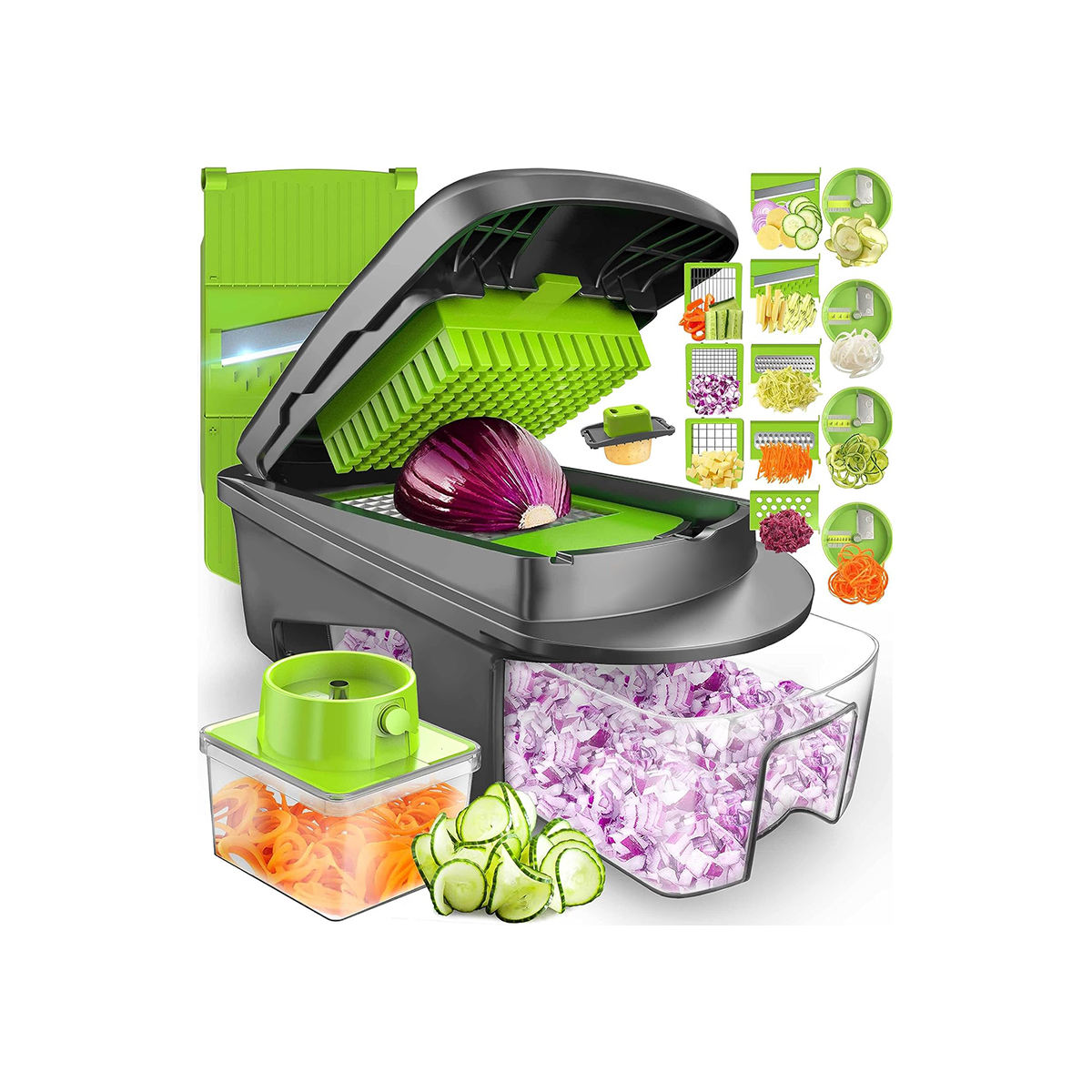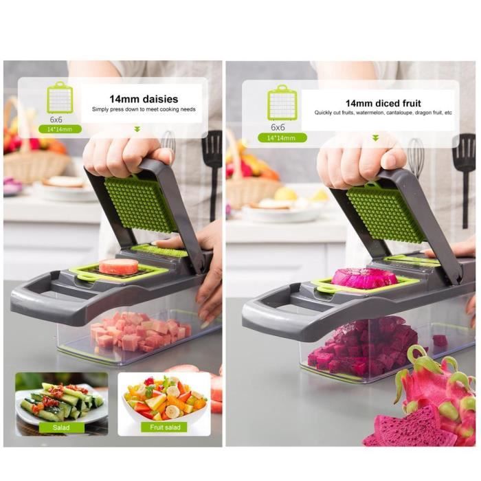 Si vous avez des questions sur le coupe-frites, n'hésitez pas à nous contacter. Coupe Légumes 7 Lames Inox All-in-1 Hachoir à Légumes, Trancheuse Mandoline Et Râpe à Omage, Coupe-ites Multi-lames Et Dicer à Légumes, Comprend Un Spiraliseur Manuel En Bonus Et Un Gadget De Cuisine - Chine Râpe Et Râpe Accessoire Cuisine Gain De Temps Hachoir Légumes Hachoir à légumes 18 en 1 Nous comparons pour vous hachoir à légumes de fullstar, Tefal, Moulinex et de nombreuses autres marques Le coupe-légumes en spirale pour légumes est également livré avec un séparateur de blanc d'œuf pour séparer facilement les blancs d'œufs des jaunes, et le hachoir à salade est livré avec un panier égouttoir et qui fournit une solution de rangement pratique Pour légumes hachés. Gain de temps et facile à nettoyer : le hachoir à légumes raccourcit le temps de hachage, de hachage et de tranchage pour les plats souhaités, évitant les tracas de la cuisson ou du hachage des légumes et des fruits. 11 In 1Hachoir À Légumes Mandoline Avec 7 Lames Et Récipient Pour Légumes, Pommes De Terre... Hachoir à légumes multifonction : le hachoir à légumes amélioré est adapté à la plupart des légumes et fruits tels que les pommes de terre, les tomates, les oignons, les concombres, les courgettes, les carottes et plus encore. Hachoir à légumes 18 en 1 : le lot de mandoline à légumes comprend 7 lames, 1 séparateur d'œufs, 1 couteau à éplucher, 1 panier d'égouttement, 1 gant, 1 fourchette de nettoyage, 1 brosse de nettoyage, 1 poussoir, 1 couvercle, 1 protège-main, 1 récipient alimentaire et 1 compartiment à lame. Le hachoir à oignons peut être démonté, il suffit d'utiliser l'accessoire de nettoyage fourni avec le hachoir pour gratter les résidus du plateau et des lames, puis rincer à l'eau. Mandoline multifonction intelligente 7 en 1 - Coupe-légumes être utilisé dans des combinaisons comme nécessaire pour cuire les plats rapidement et raccourcir le temps de préparation des repas. à portée des enfants.