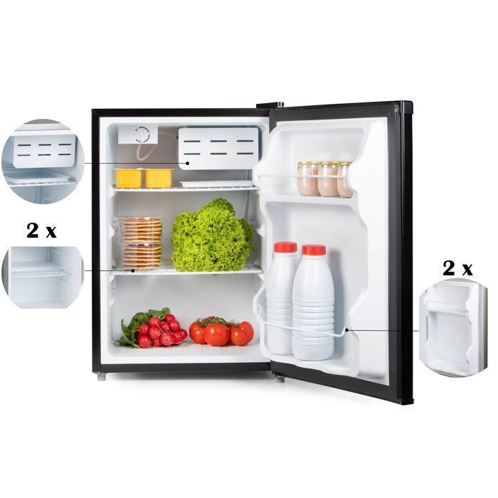 Consommation d'énergie : +/- 110 kWh/an, Niveau sonore : 39 dB Direction de la porte réglable Réfrigérateur Autonome Silencieux Congélateur Horizontal Ignis Autonome CO310EG 311 Litres Réfrigérateur Congélateur PRIMO Le PRIMO PR176FR est un appareil populaire dans la catégorie des réfrigérateurs de table. Grâce à ses dimensions compactes, vous avez besoin de peu d'espace pour placer ce réfrigérateur de table PRIMO. DESIGN MODERNE ET FORMAT PRATIQUE – Grâce à ses dimensions compactes de 44,5 x 47,5 x 84,5 cm, ce frigo bar s’intègre parfaitement dans les petits espaces et peut aussi faire office de mini bar réfrigéré pour vos boissons préférées Le réfrigérateur est également équipé d'un éclairage LED économe en énergie pour vous aider à vous repérer. Le compartiment congélateur avec sa propre porte a une capacité de 12 litres. PORTE RÉVERSIBLE POUR UNE INSTALLATION FLEXIBLE – Le réfrigérateur PRIMO dispose d'une porte réversible, s'ouvrant à gauche ou à droite, idéale pour s’adapter à votre cuisine, bureau ou chambre Le compartiment réfrigérant a une capacité de 68 litres. Ce réfrigérateur de table est idéal pour une utilisation occasionnelle, mais il trouve également sa place dans les cuisines à l'espace limité. Spécifications : Capacité totale : 80 litres Classe énergétique : D Vous pouvez le faire vous-même grâce aux explications claires du manuel. Ce frigo offre non seulement une capacité généreuse de 80 litres, mais aussi des caractéristiques modernes et une faible consommation d'énergie Capacité du congélateur : 12 litres Plus qu'il n'en faut pour ranger les courses du quotidien. Avec une capacité totale de 80 litres, répartie entre le réfrigérateur de 68 litres et le compartiment congélateur de 12 litres, le PR176FR est polyvalent. Classement par étoiles : 4 étoiles, Couleur : Blanc Ce réfrigérateur est souvent décrit comme compact à l'extérieur, mais spacieux à l'intérieur. Laissez environ 10 centimètres pour que la chaleur se dissipe. Aucune connaissance technique n'est requise. PRIMO PR151RKZ Réfrigérateur | Non-encastré - Largeur 48,80 cm... Classe climatique : N/ST Réfrigérateur avec compartiment congélateur Le PRIMO PR176FR a une capacité combinée de pas moins de 80 litres. Capacité du réfrigérateur : 68 litres Les clayettes offrent suffisamment d'espace pour stocker vos boissons préférées. Dimensions (L x l x h) : 44,5 x 47,5 x 84,5 cm Nettoyez régulièrement votre réfrigérateur par l'intermédiaire du drain situé sur la paroi arrière. Grâce au régulateur de température mécanique, vous réglez la bonne température en un rien de temps. Réfrigérateur de table indépendant Le PRIMO PR176FR est un combiné réfrigérateur et congélateur de table indépendant. La régulation mécanique de la température permet de régler facilement le réfrigérateur à la bonne température. L'ouverture réversible de la porte permet de trouver un emplacement encore plus facilement. PRIMO PR176FR Kühlschrank (D, 84,50 cm hoch, Weiss