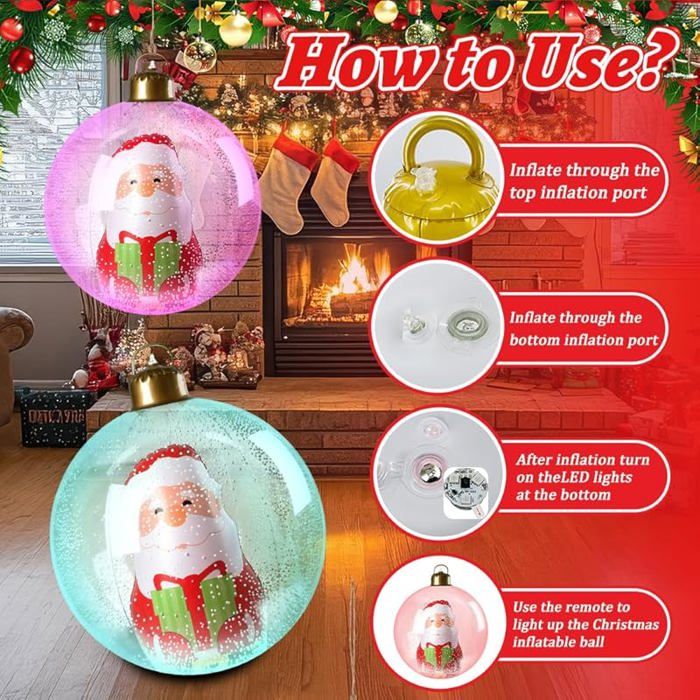 Boule De Noel Gonflable Exterieur Contenu du produit:1 morceau * boule gonflable de Noël Ornement Jardin Pelouse Terrasse YOSOO Boule De Noël Géante Boules De Noël Gonflables De 23,6 Pouces Decorations Noel Exterieur En raison de différentes mesures manuelles, veuillez permettre une différence de taille de 1 à 2 cm. Comment décorer sa fenêtre pour Noël ? - Expert en fenêtre iupoo Lot de 50 sacs gonflables d'eballage en plastique transparent... Installation Moderne: Profitez d'une installation rapide et facile grâce au gonflage par pompe à air intégrée, idéal pour décorer sans effort avec ces ornements de Noël gonflables pour extérieur, parfait pour gagner du temps pendant les préparatifs des fêtes Esthétique Intemporelle de Noël: une palette de couleurs traditionnelle et des motifs classiques de Noël, ces grands ornements gonflables festifs créent une ambiance de fête chaleureuse et invitante pour vos décorations de vacances. Polyvalence Extérieure: Idéales pour les pelouses et allées, parfaites pour les terrasses et porches, ces décorations de Noël gonflables embellissent les célébrations avec une large applicabilité dans les espaces extérieurs festifs Taille: 66 x 48 cm / 25,98 x 18,9 poucesMatériel: PVCPoids: 210gNote:En raison de différents paramètres d'éclairage et d'écran, la couleur de l'élément peut être légèrement différente de l'image. Leur présence visuellement frappante garantit un engagement festif maximal tout en célébrant l'authenticité des fêtes de fin d'année Fabriquées en PVC résistant, ces grandes boules décoratives mesurent 60 cm et sont imperméables pour plus de praticité.