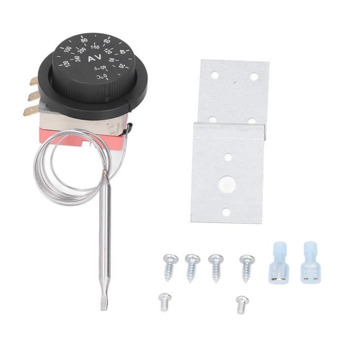 BOÎTIER INTERRUPTEUR ESTOP longue durée de vie mécanique et électrique... Réglable et durable : adoptez un contrôleur de température de ventilateur réglable et une conception de capteur de sonde de température en acier inoxydable. Température contrôlée : interrupteur flexible, plage de contrôle de la température de 32 à 248 ℉ (0 à 120 ). Kit Sonde Temperature Ventilateur Kit De Sonde De Contrôle De Température Réglable Pour Sonde De Ventilation électrique Marqueurs de température Celsius et Fahrenheit : La température fermée est toujours inférieure de 15 à la température ouverte, et le cadran thermostatique est marqué à la fois en Celsius et en Fahrenheit. Thermostat universel pour chauffe-eau électrique, 250v, 16a... Fonctionnalité :1., Réglable et durable : adoptez un contrôleur de température de ventilateur réglable et une conception de capteur de sonde de température en acier inoxydable., 2., Fonction de mesure de la température : la sonde peut mesurer la température de et alimenter le ventilateur électrique., 3., Température contrôlée : interrupteur flexible, plage de contrôle de la température de 32 à 248 ℉ (0 à 120 )., 4., Conception à 3 broches : La conception à 3 broches permet au thermostat d'être connecté à des circuits normalement ouverts ou normalement fermés., 5., Sonde de montage : la sonde peut être montée entre les ailettes du radiateur ou les tuyaux d'entrée et de sortie internes. BOÎTIER INTERRUPTEUR ESTOP longue durée de vie mécanique et électrique