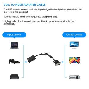 Adaptateur Vidéo Son Inclus 255mm Adaptateur Vidéo HDMI Mâle Vers VGA Femelle 1080p Avec Sortie Audio 3,5 Adaptateur Pour Projecteur Top 10 meilleurs adaptateurs HDMI à VGA en 2025 (Avis Il convertit le signal HDMI en VGA avec une résolution jusqu'à 1080P, pour une image nette et fluide. Il inclut une sortie audio 3,5 mm pour brancher des haut... Idéal pour les particuliers et les professionnels qui ont besoin d'une solution de connectivité fiable pour les présentations, les jeux ou le divertissement Pour le réglage, que ce soit au bureau, à la maison ou en déplacement, cet adaptateur compact et portable connecte les ordinateurs portables, les ordinateurs de bureau et les lecteurs à des écrans et projecteurs VGA. Construit en ABS durable, ce convertisseur est conçu pour résister à l'usure quotidienne, offrant des performances durables et une stabilité pour tous vos besoins numériques. Contenu du paquet : 1 adaptateur HDMI vers VGA., 1 câble., 1 câble USB. Doté d'un design Plug and Play, cet adaptateur ne nécessite pas de pilote ou de configurations complexes, et ses connecteurs plaqués or garantissent une excellente conductivité et une réduction des pertes de signaux. Remarque : Les mesures étant prises à la main, les tailles indiquées peuvent varier de 1 à 2 cm. La couleur de l'article peut varier de celle de la photo, en fonction des paramètres d'affichage et de luminosité de votre ordinateur. Pour le réglage, que ce soit au bureau, à la maison ou en déplacement, cet adaptateur compact et portable connecte les ordinateurs portables, les ordinateurs de bureau et les lecteurs à des écrans et projecteurs VGA. Vous avez besoin de connecter votre PC équipé d'une sortie HDMI à un écran VGA ? L'adaptateur PC HDMI vers écran VGA est la solution idéale pour cela