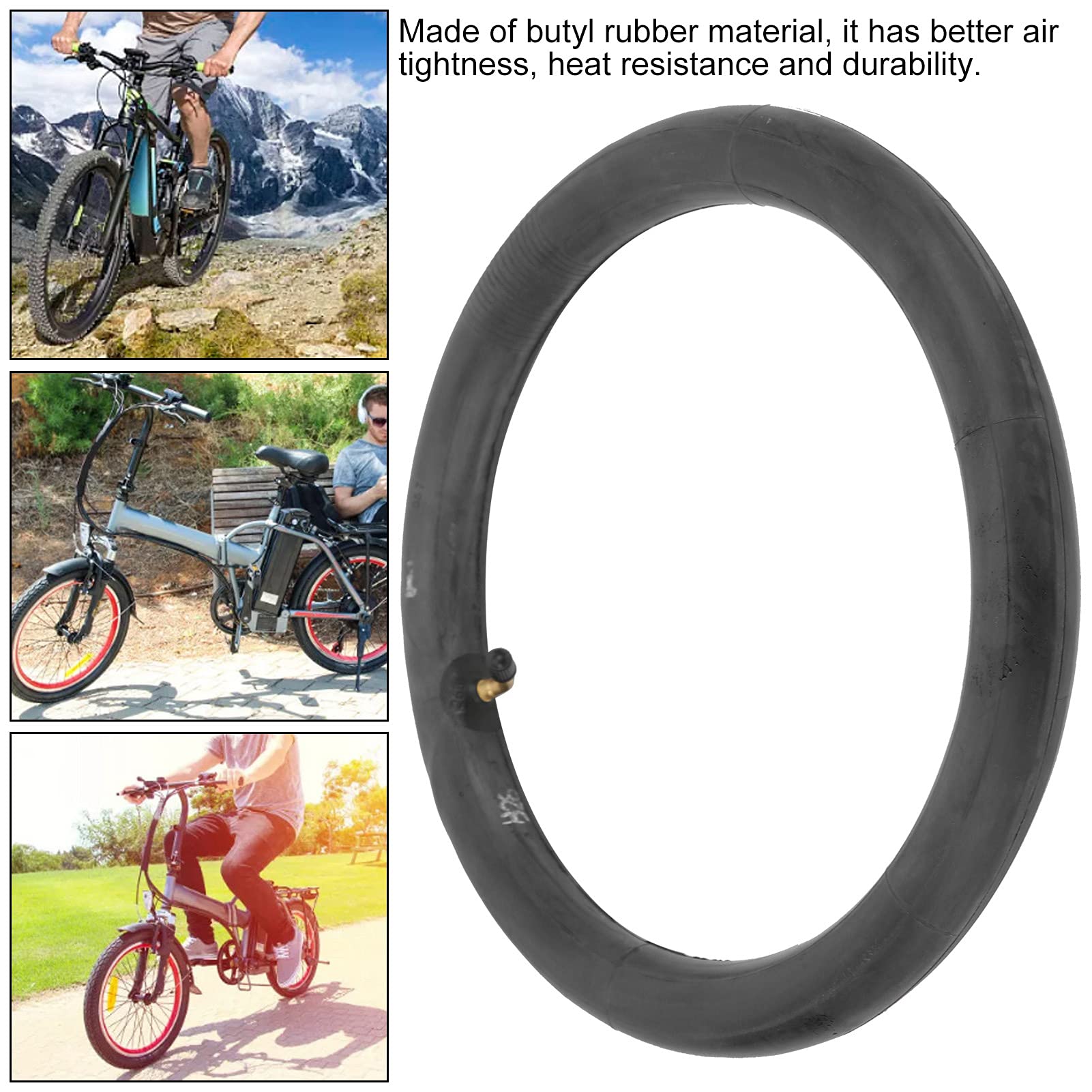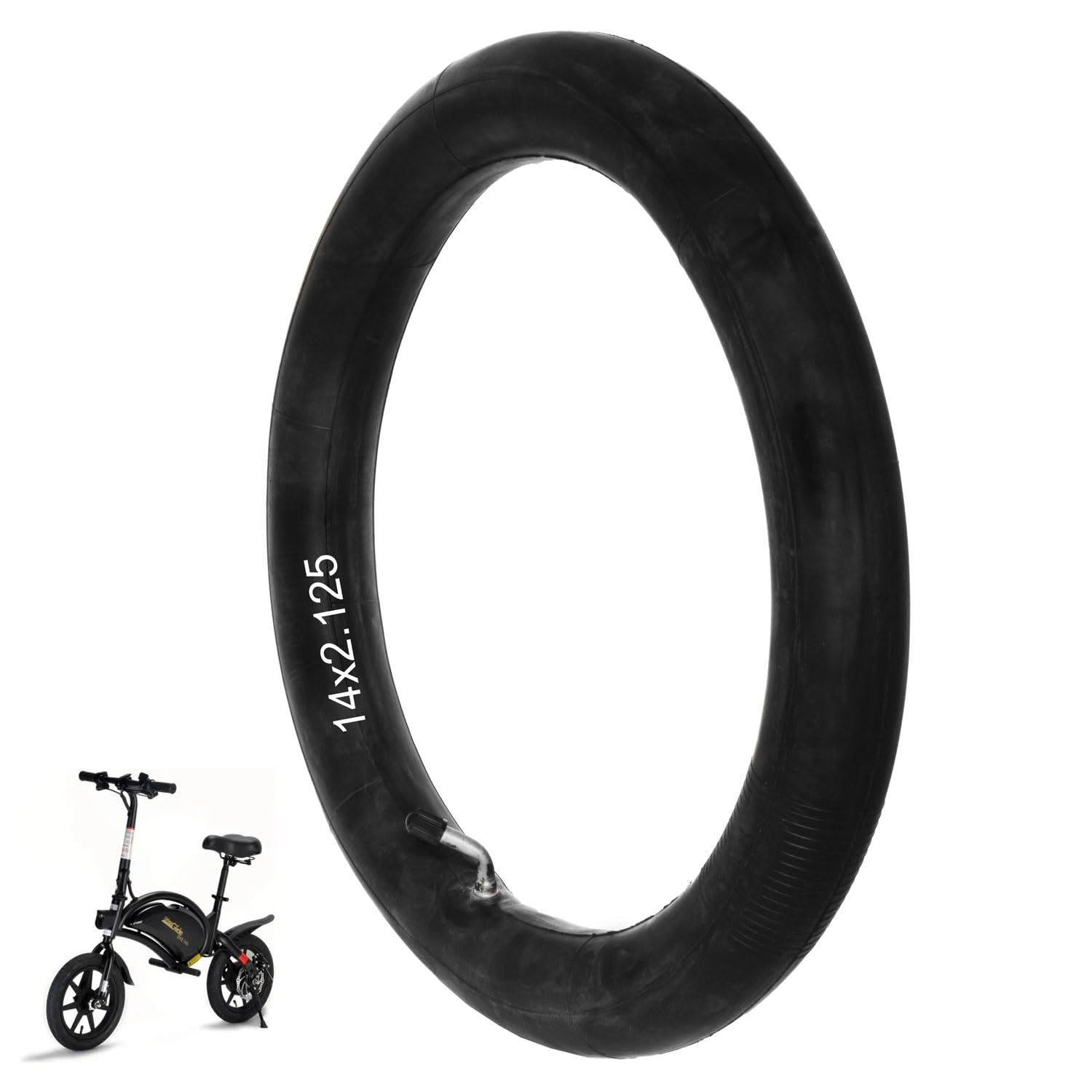 Chambre à air, Robuste Tube de Vélo 14x2.125, Chambre a air Velo avec Tige de Valve coudée, Parfait pour l'entretien de vélo électrique Caractéristiques : * Nom du produit : pneu solide 14 x 2,125., *Matériau : caoutchouc. Chambre à Air Scooter électrique Chambre à Air En Caoutchouc Pour Vélo Électrique, 14 Pouces, 14x2.125, Coudée En Métal, Fournitures De Remplacement De Valve Pneu Solide Vélo électrique * Apparence élégante : avec sa couleur noire élégante, le pneu fonctionne non seulement bien, mais ajoute également une touche moderne à votre scooter électrique, ce qui le rend visuellement attrayant. Ensemble chambre à coucher enfant, tête de lit table de chevet... Chambre à air et pneus antidéflagrants pour scooter électrique, 10x2.5... Ajustement sécurisé : spécialement conçu dans la taille 35,6 x 325,5 cm (57-254), ce pneu garantit un ajustement parfait pour diverses scooters électriques, améliorant la performance générale. * Couleur : noir (comme sur les photos)., *Poids : 1470 g., * Dimensions : 320 x 52 mm. Aspect noir élégant : avec sa couleur noire élégante, ce pneu est non seulement exceptionnel, mais ajoute également une touche moderne à votre trottinette électrique, ce qui le rend visuellement attrayant. * Ajustement parfait : conçu spécifiquement dans la taille 14 x 2,125 (57-254), ce pneu garantit un ajustement parfait et sécurisé pour une variété de scooters électriques, améliorant la performance générale. Contenu de l'emballage : 1 pneu solide. * Design anti-crevaison : le pneu solide est conçu pour être anti-crevaison, offrant une tranquillité d'esprit pendant les trajets et éliminant les tracas des pneus crevés.
