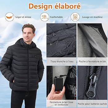 Blouson Chauffant Batterie Veste Chauffante KEMIMOTO Homme/Femme | 4 Zones Chauffantes & Batterie 9600mAh | Imperméable Coupe-Vent Impermeable Homme Veste Chauffante - Non spécifié - Gilet USB - 17 Zones de Chauffage... Doudoune Femme Manteau Chauffant Moto Seenlast Gilet Chauffant Femme - Veste Électrique , 3 Niveaux De Chaleur, Batterie 10000mAh Incluse 4 Zones Chauffantes Doudoune Homme 【Conception à double contrôle,5 zones de chauffage 】Contrairement aux vetement chauffant traditionnelles, notre interrupteur à double commande vous permet de régler indépendamment la température de votre dos (BACK) et de votre abdomen (BELLY). 【Batterie Rechargeable 】Veste chauffante équipée d'une batterie 5V/10000mAh, autonomie jusqu'à 8h. Veste Chauffante Homme et Femme Blouson Chauffant USB Électrique avec Batterie 10000mAh, 5 Zones Chauffantes & 3 Niveaux de Température - Manteau Doudoune à... L'élément chauffant en fibre de carbone chauffe rapidement et continuellement les 5 zones centrales au milieu de la taille gauche et droite, du cou et du dos pour garder votre corps au chaud. Remarque : Retirer la batterie et ranger le connecteur USB avant lavage (lavable à la main/machine, nettoyage à sec). Elle vous garde au chaud à tout moment et en tout lieu. 【Utilisations polyvalentes】 : Veste chauffante électrique légère et chaude, idéale pour les activités automne-hiver (ski, camping, motoneige, randonnée, pêche, chasse) ou le travail de bureau.