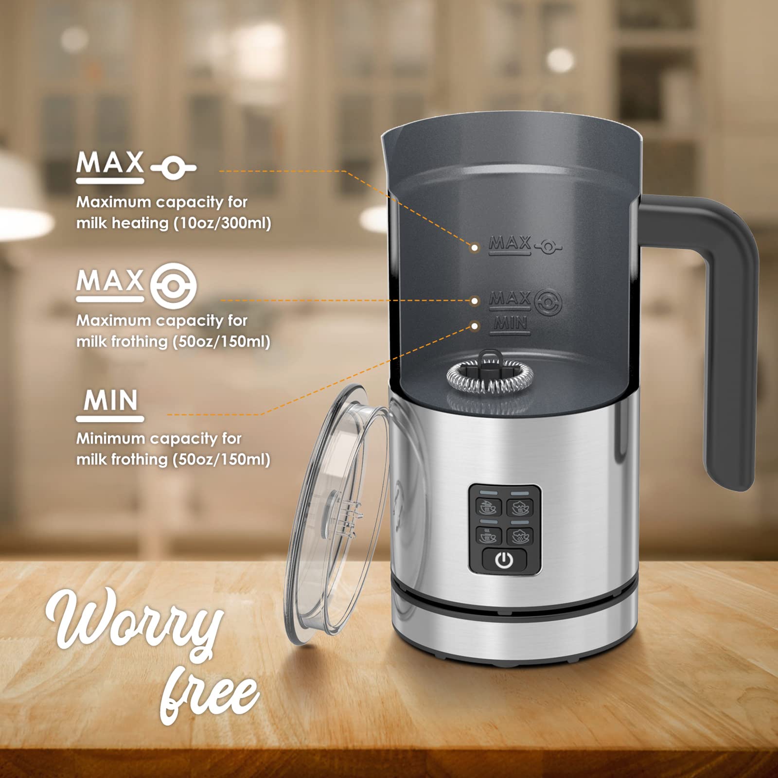 Mousseur Pour Cappuccino Mousseur à Lait électrique 4 En 1 - CHICHENG - Chauffe Et Mousse - 300 Ml - Acier Inoxydable Mousseur Lait 4 En 1 Chaud Froid Mousseur Sans BPA Facile Nettoyage Mousseur à Lait électrique Morpilot 4 En 1 - 400W - 240ml - Mousse Chaude Et Froide - Programmes Automatiques Appareil Lait Chaud Froid Avec sa puissance de 400 W, il prépare une mousse onctueuse en 2 min et chauffe 430 ml de lait en 3 min. Et le top ? Il est super silencieux ! Fabriqué en acier... Le design détachable et le nettoyage facile rendent ce mousseur plus pratique que les modèles classiques. 【Capacité Optimale】Capacité maximale de 430ml pour le lait chauffé et 160ml pour la mousse. Convient parfaitement pour des portions individuelles ou familiales. 【Design Pratique et Durable】Fabriqué en acier inoxydable 304 avec un revêtement intérieur antiadhésif et résistant aux rayures. Fonctionnement silencieux et contrôle précis de la température (70°C maximum) pour préserver les nutriments du lait. 【Sécurité et Facilité d'Utilisation】Fonctionnement en une touche avec affichage LED. Inclus un pinceau de nettoyage pratique pour un entretien facile. Fonction quatre en un Au simple toucher d'un bouton, le mousseur à lait automatique déclenche quatre fonctions, et les signaux lumineux colorés sur la base peuvent servir d'aide à l'utilisation pour sélectionner le programme souhaité, parfait pour préparer un latte macchiato, un chocolat chaud, un cappuccino et une mousse de lait froide/chaude.Latte Design Nous avons introduit le design...