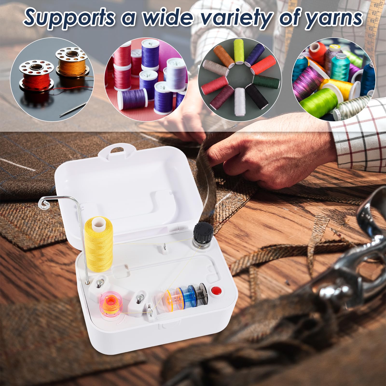 Appuyez à nouveau pour régler la quantité de bobinage. Remarque : Utilisez uniquement des piles non rechargeables. [Compact et portable] Notre bobineuse électrique mesure 13,8 x 10,6 x 7,8 cm. Insérez la canette dans l'axe jusqu'au clic. Mini Machine À Coudre Électrique Portable Sans Fil Pour Tissus Spécifications :Matériau : ABS + alliageDimensions : 13,8 x 10,6 x 7,8 cm / 5,43 x 4,17 x 3,07Puissance : 7,2 W (5 V CC ou 2 piles AA)Poids : 320 gCaractéristiques : Arrêt automatique, compact, double alimentation, moteur haute vitesse. Enfilage et insertion de la canette :Guidez le fil à travers l'œillet et les clips de tension. Bobineur de canette à coudre électrique automatique cadeau pour les... [Alimenté par batterie/USB] Notre enrouleur de canette électrique est alimenté par un chargement USB ou 2 piles AA (USB et piles non incluses) Mode d'emploi :Mise en marche :Insérez 2 piles AA (non rechargeables) ou connectez l'appareil via un câble USB-C (adaptateur 5 V). [Sûr et durable] Notre enrouleur de bobine électrique est fabriqué en ABS et en alliage, robuste et durable, plus sûr, puissance du produit : 7,2 W Enrouleur Laine Bobinoir électrique Automatique Avec Support De Fil Pour Machine à Bobineur Canette Automatique Ce mini bobineur de fil occupe un petit espace sur la table, pratique pour le stockage et le voyage. Enroulement automatique efficace: Dites adieu aux bobineuses de fil manuelles, libérez vos mains et évitez la fatigue Lorsqu'elle n'est pas utilisée, son couvercle se ferme facilement, ce qui facilite son rangement et prévient l'accumulation de poussière.
