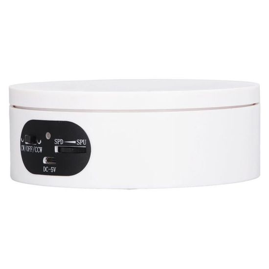 Présentoir rotatif : Ce présentoir à rotatif est principalement fabriqué en PVC léger, ce qui lui assure une durabilité. Présentoir rotatif : fabriqué en pvc de haute qualité, il est facile à utiliser et très performant Présentoir rotatif : idéal pour présenter bijoux, montres, produits numériques, shampoing, verres, sacs, objets de collection, etc. Informations sur les produits Socle rotatif : Il vous servira de support. 14,5 cm (blanc) Plateau rotatif électrique à 360 ° pour Plateau tournant : Le design du plateau tournant automatique est simple, élégant et pratique, et permet d'exposer vos sous différents angles. -Il est largement utilisé dans les magasins de détail, les supermarchés et les collections pour la maison, et constitue un présentoir rotatif très pratique. Location Tournette plateau tournant motorisé vitesse variable 67cm... Plateau tournant : largement utilisé pour les expositions thématiques, les vitrines, la présentation de produits, les expositions photographiques, les présentoirs cubiques et la publicité, base rotative -Ce présentoir électrique est économe en et respectueux de ; c'est le présentoir à rotatif qu'il vous faut. il sera le choix idéal pour présenter vos bijoux ou votre plateau tournant Support Exposition Bijoux Photographie Présentoir Rotatif électrique Blanc De 25,4 Cm Avec Charge Centrale LED De 20 Kg Pour Table, Support Motorisé à 360 Degrés Pour Photographie De Bijoux Plateau Tournant Motorisé Tel un présentoir, un plateau tournant motorisé rotatif permet de mettre l’affichage de produits dans les magasins. Derrière une vitrine en verre, il vous aide à mettre en valeur vos articles en effectuant des mouvements de rotation à une bonne vitesse présentoir rotatif pour boucles d'oreilles
