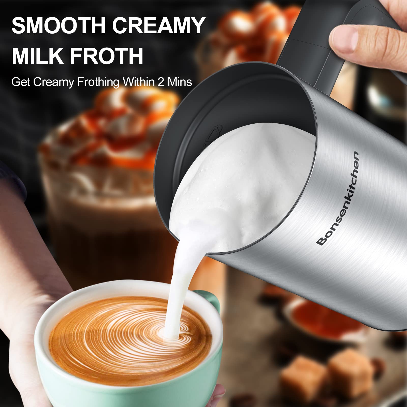 Notre top 10 des Bonsenkitchen Mousseur À Lait Electrique au Le joint étanche à la base du fouet empêche efficacement les fuites de liquide et les démarrages accidentels, tout en prolongeant la durée de vie du moteur — alliant commodité, sécurité et durabilité. Mousseur Lait Rechargeable Usb-c 3 Vitesses Inox Silencieux Mousseur À Lait Électrique Portatif Avec Support Rechargeable Usb Mini Mixeur Chargement Rapide USB-C et Joint Étanche: Alimenté par une batterie Li-ion intégrée de 1500 mAh avec charge USB-C. ousseur à Lait Électrique, Dallfoll ousseurs à lait à ain... FIOUSY ousseur à lait électrique portable avec 2 têtes, fouet... Le moteur intégré fonctionne silencieusement (<60 dB), vous permettant de commencer votre journée efficacement sans déranger votre entourage. Fouet Détachable et Design Compact et Portable: Doté d'un fouet amovible, ce mini mixeur a un design léger et compact pour un nettoyage et une portabilité faciles. Le nettoyage est tout aussi simple — un simple rinçage suffit. Grâce à ses performances puissantes et son contrôle précis, il obtient la consistance parfaite pour tout ingrédient en quelques secondes — votre barista personnel, perfectionné. Inclut un support élégant en acier inoxydable pour un rangement et une organisation pratiques. Commande à 3 Vitesses par Simple Touche: Le mousseur à lait dispose de trois vitesses réglables (Lente pour une mousse légère, Moyenne pour une texture veloutée, Rapide pour une mousse onctueuse).