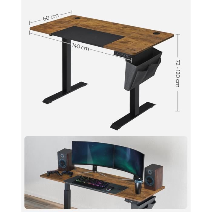 Bureau Réglable En Hauteur électrique Bureau Électrique Assis-Debout Claiks 140x60cm - Avec Tiroirs, Mémoire 3 Positions | Bureau Ergonomique Sur Roulettes (Marron) Bureau Assis Debout Bureau électrique assis-debout ergonomique Maxime-Largeur 140 cm... Bureau Assis-debut électrique Bureau Debout électrique Réglable En Hauteur De 140 X 61 Cm Avec 2 Bureau 140x60 1 Vidéo de marchand En même temps, la conception mobile du support de moniteur offre non seulement plus d'espace de rangement, mais est également plus facile à nettoyer. Bureau Assis Debout Électrique - MAKIKA - 140 x 70 cm - Blanc... Ce bureau debout est fabriqué avec un cadre en acier carboné de qualité industrielle et un mécanisme de levage électrique intégré, supportant une charge maximale de 80 KG Poste de travail informatique idéal : Doté de nombreuses solutions de rangementThoughtful, telles qu'un tiroir en tissu, un support pour téléphone, un support pour iPad, un crochet pour casque et deux crochets pour sacs, le bureau ajustable en hauteur WALKINGDESK crée un espace de travail parfait pour chaque travailleur à domicile. Profitez des avantages d'un bureau debout, y compris une meilleure posture, plus d'énergie et une concentration accrue pour une journée de travail plus agréable. Passez d'assis à debout en quelques secondes !