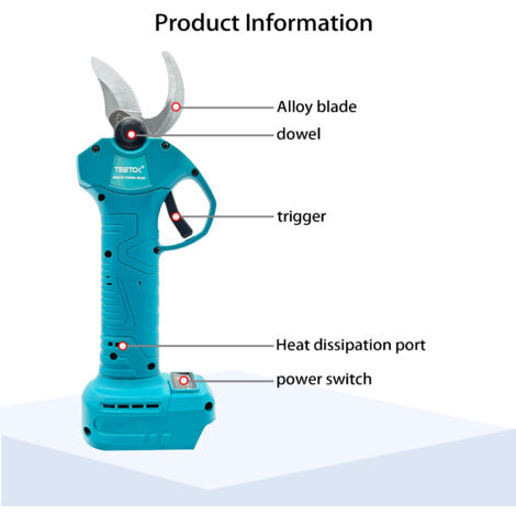 (Appuyez sur le bouton d'alimentation lorsque les ciseaux sont fermés). Tension de charge : 220 V 50-60 h. Ne coupez pas d'objets durs tels que le fer à l'exception des branches. En combinaison avec le design en arc, les branches peuvent être coupées en douceur et proprement. La lame est forgée en acier au carbone SK5 à haute résistance avec une plus grande ténacité et rigidité pour un fonctionnement rapide et durable. Ce sécateur est idéal pour la taille de vignes, d'arbres fruitiers et d'autres travaux de jardinage. Grâce à sa conception ergonomique et à sa puissance, il rend la coupe des branches aussi simple que le beurre Si vous avez des questions, nous les résoudrons pour vous. Matériaux de qualité supérieure : les lames de ce produit sont fabriquées en acier suisse SK5 à haute teneur en carbone. Description du produit Sécateur électrique : Tension de fonctionnement : 18 V. Secateur Electrique Sans Fil Makita Sécateur électrique Sans Fil 30mm, Coupe-ciseaux, Sécateur + 2 Secateur Makita WingFly ini euleuse d'angle Sans Fil 28000RP, 16.8V Professional... Avec ce produit, vous pouvez couper des branches, des arbustes, des greffes et plus encore. Le produit est ergonomique et vous permet de ne pas vous sentir fatigué même après une utilisation prolongée. Le design de sécurité garantit votre utilisation en toute sécurité. Nous sommes une entreprise professionnelle d'outils électriques, le corps principal du sécateur électrique a une garantie de 12 mois Sécateur Sans Fil, Moteur Sans Balais, Compatible Avec Batterie Makita 18 V Bleu 84254779 Peut être utilisé dans différents jardins, parcs, fermes, ranches et vergers. Étape 2 : respectez les performances d'affichage. Étape 4 : éteignez l'interrupteur après utilisation pour des raisons de sécurité Étapes d'utilisation Étape 1 : pour allumer.