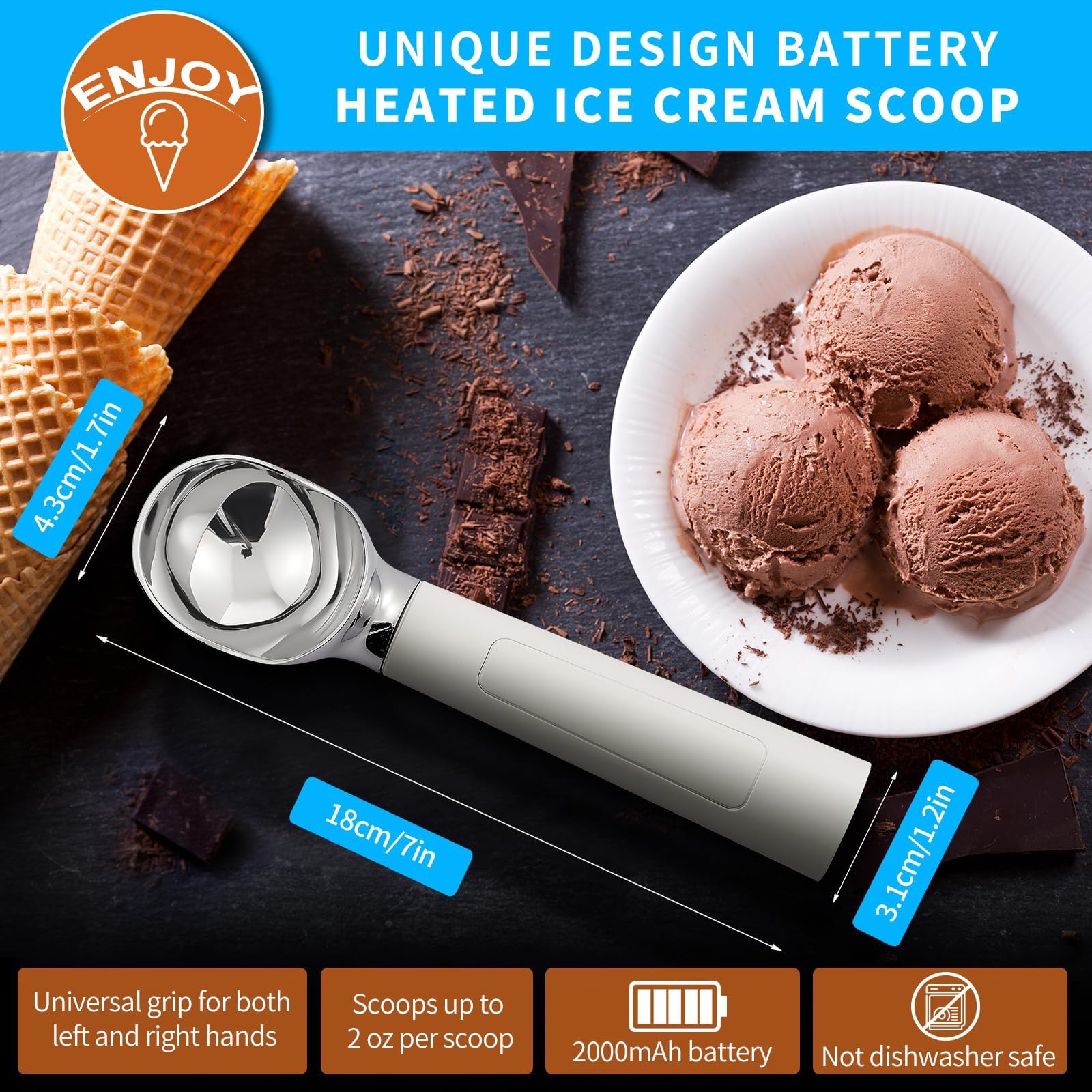 Balance de cuisine électronique rechargeable USB 10kg / 1g, balance de... Appuyez sur le démarrage pour une utilisation facile : avec un design de démarrage tactile, une poignée pour activer le chauffage et un compte arrière de 40 secondes sur l'écran, vous avez suffisamment de temps pour préparer, facile à utiliser pour faire de la crème glacée. Durable et sain : étanche IP67, prend en charge plusieurs charges, le corps de la cuillère utilise des matériaux de qualité alimentaire certifiés par la FDA, le corps de la cuillère utilise un matériau en alliage de zinc clair de qualité alimentaire, facile à nettoyer et durable pour vous offrir une expérience utilisateur apaisante. Cuillère Glace Rechargeable Cuillère Professionnelle Sorbet Cuillère à Glace électrique USB - Chauffante Inox Avec écran Température IP67 Cuillère Chauffante Glace Dure Cuillère à Glace Obest Acier Inox Chauffage rapide et creusage facile : grâce à la nouvelle technologie de conducteur de chaleur douce contrôlée par puce, le chargeur blanc automatique peut être chauffé à la température appropriée en peu de temps, de sorte que la glace est facilement formée, ne colle pas et résout parfaitement le problème de la glace dure. 3000W 220V Électrique Instantané Robinet Chauffe-E... – Grandado OBEST Cuillère à glace électrique chauffante, rechargeable, avec affichage LED, en acier inoxydable, facile à nettoyer, cuillère à glace dure HandyStairs garde-corps en acier inoxydable Grip Black - balustrade