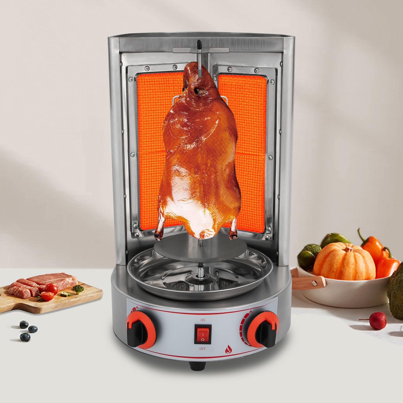 Grâce à la rôtissoire verticale, fini les longues attentes pour finir ensuite avec un rôti mal cuit. Avec sa broche verticale tournoyante qui permet une cuisson rapide et homogène, le rôti parfait sera au rendez-vous. Pour en savoir plus à ce sujet et trouver la rôtissoire verticale la mieux... Four à rôtir : convient pour diverses occasions : restaurant, barbecue en plein air, barbecue intérieur. Barbecue de haute qualité : la machine à kebab est un levier de réglage qui peut ajuster la distance entre la nourriture et la source d'énergie en fonction de la demande. Rotissoire Electrique Poulet Machine à Rôtissoire électrique Verticale Avec Poêle De Collecte D'huile, Grille De Four En Acier Inoxydable, Réglable à 300 ℃, Kebab Rotatif à 360 Barbecue Rotissoire Rôtissoire professionnelle pour poulet : rotation à 360°, barbecue intelligent à température constante, uniformément chauffé, pénètre dans chaque centimètre de viande et cuit uniformément. Machine à kebab- gaz - 4 brûleurs - ARCHWAY Barbecue à gaz : taille 29,5, 30, 48,5 cm, poids 6 kg, 4300 W, rotation à 360°, levier réglable, plate-forme de mélange de viande de grande capacité, bâton de viande grillée, trou de dissipation de la chaleur latérale Machine à kebab au gaz 3 feux, broche kebab professionnelle gaz