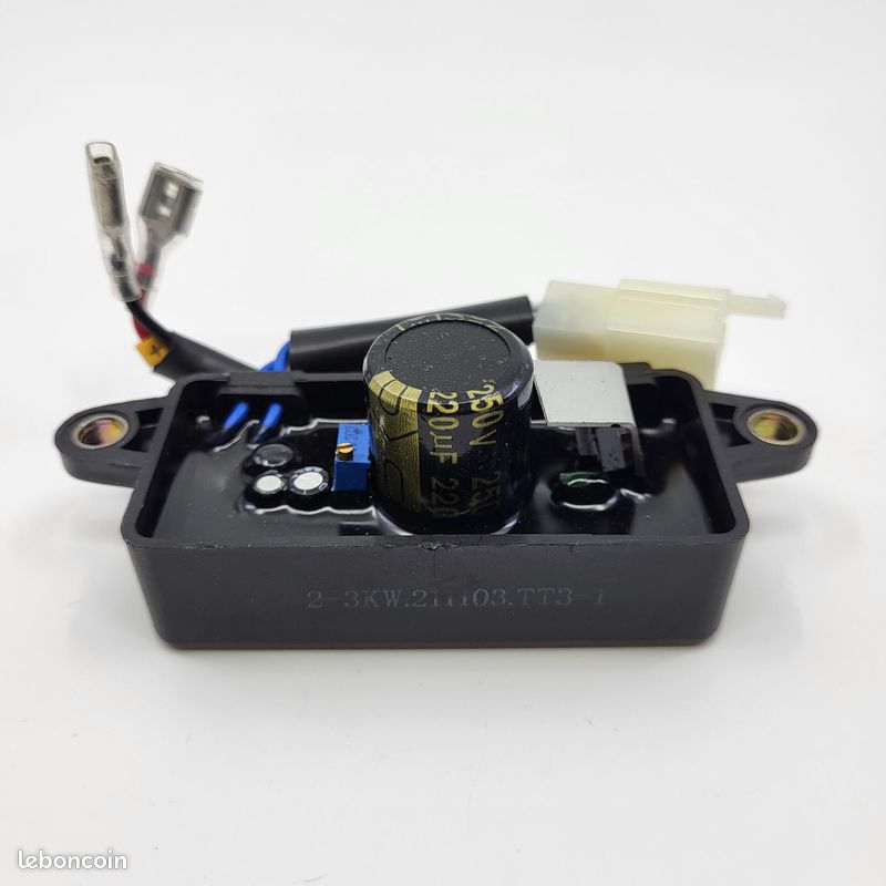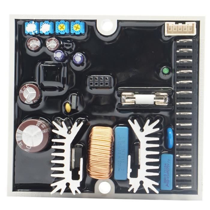 CARTE DE RÉGULATEUR AVR De Générateur Carte De Régulateur De Tension... Longueur : 81 mm, Largeur : 37 mm, Epaisseur : 22 mm, Hauteur totale : 37 mm 2 fils : Rouge et Noir Pièce Remplacement Générateur Groupe Électrogène AVR : Fonctionnement Et Avantages Carte AVR Vérifiez toutes les caractéristiques Caractéristiques : Puissance : 3000 W 220µF Longueur : 81 mm Largeur : 37 mm Epaisseur : 22 mm Hauteur totale : 37 mm Entraxe de fixation : 98,8 mm Nombre de fixation : 2 Nombre de broches : 4 2 fils : Rouge et Noir Universel]Le produit est un accessoire universel, il convient aux générateurs de 1 à 3 kW. [Composant électronique]Le produit est composé de composants électroniques de haute qualité avec des performances stables et fiables Carte AVR Groupe Électrogène de 2 à 3kW régulateur de tension. AVR Régulateur de Tension Automatique en Forme d'Arc pour Générateur d'Essence en Aluminium 2 Phases 6 Fils de 6.5KW 7KW 8.5KW 450V 680VF