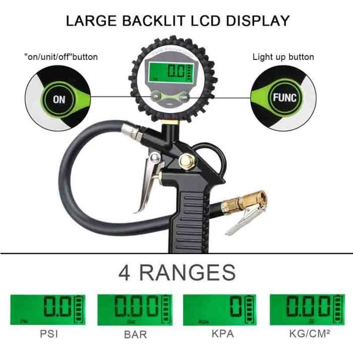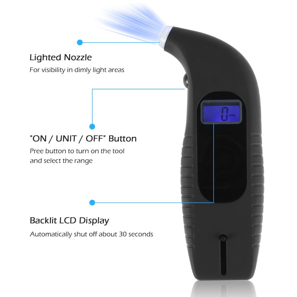 Appuyez fermement pour assurer une bonne étanchéité et empêcher l'air de s'échapper., 2., Maintenez la jauge sur la valve jusqu'à ce que la lecture sur l'écran LCD se verrouille. Affichage Numérique Manomètre Des Pneus Accessoires Automobiles Contrairement aux manom¨¨tres volumineux, il est toujours accessible quand vous avez besoin de v¨¦rifier la pression de vos pneus. Jauge Pression Pneu Psi Kpa Bar Manomètre électronique Numérique De Pression Des Pneus De Voiture, Mini Pile CR2032 Manomètre Spécifications : Type d'article : manomètre de pneu Matériau : ABS + caoutchouc Couleur : jaune Plage de mesure : 5,0-100 psi, 0,35-7,00 bar Précision : ±1 psi Résolution : 0,5 psi Unité : PSI, kPa, Bar Type d'écran : LCD 22 x 12 mm Type de batterie : 1 * CR2032 pour manomètre de pneu, 3 * LR44 pour LED Liste des paquets : 1 * Manomètre de pneu Comment utiliser : 1., Placez la buse de la jauge sur la valve du pneu. L¡¯LED dans la buse renforce la praticit¨¦ la nuit, garantissant une utilisation en toutes situations. 4 pièces - Système de surveillance des pneus, capteur de pression... ¡¾¨¦conomie ¨¦nergie¡¿Dot¨¦ d¡¯un allumage/extinction manuel et d¡¯un extinction automatique (apr¨¨s 20-60 secondes), il ¨¦conomise la batterie (1x CR2032). ¡¾Compact Pratique¡¿De taille compacte et l¨¦ger, il est facile ¨¤ saisir et ¨¤ manipuler. PSI en bar : convertisseur gratuit, formule et tableau La pr¨¦cision de mesure (¡À1 psi) et la r¨¦solution de 0., 5 psi assurent des r¨¦sultats fiables pour un contr?le optimal de la pression. Que ce soit pour des voitures europ¨¦ennes (Bar), am¨¦ricaines (PSI) ou asiatiques (kPa), il s¡¯adapte ¨¤ vos besoins. Il tient facilement dans la main ou dans une poche de voiture, sans encombrer. [Poignée antidérapante pour une utilisation sûre] La poignée en caoutchouc offre une prise sûre et confortable pendant le fonctionnement [Lecture facile avec écran LCD rétroéclairé] L'écran rétroéclairé garantit des lectures claires et précises pour une évaluation rapide [Compact et conception légère] Facile à saisir et à utiliser, idéal pour des contrôles de pression des pneus sans tracas [Mesure précise en trois unités] Mesurez le psi, le kpa et la barre avec précision pour une surveillance précise [Économie d'énergie avec Arrêt automatique] Fonction marche/arrêt manuelle et arrêt automatique pour économiser de l'énergie Spécifications : Caractéristiques : 1., Écran LCD rétroéclairé pour une lecture facile, plus intuitive et précise., 2., Trois unités : PSI, kPa, Bar, mesure précise et commutation précise., 3., Taille compacte et légère, facile à saisir et à utiliser., 4., Conception de poignée en caoutchouc antidérapante, bonne sensation de main, utilisation sûre., 5., Mise sous/hors tension manuelle et arrêt automatique pour économiser de l'énergie., 6., La lumière LED à l'intérieur de la buse du manomètre, pratique pour une utilisation nocturne. Cette conception ¨¦vite les glissements pendant l¡¯utilisation, renfor?ant la s¨¦curit¨¦ et la pr¨¦cision des mesures.