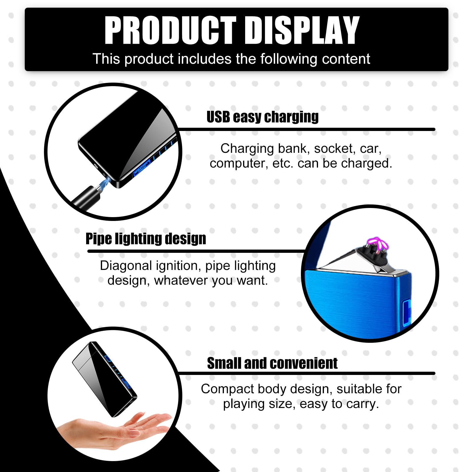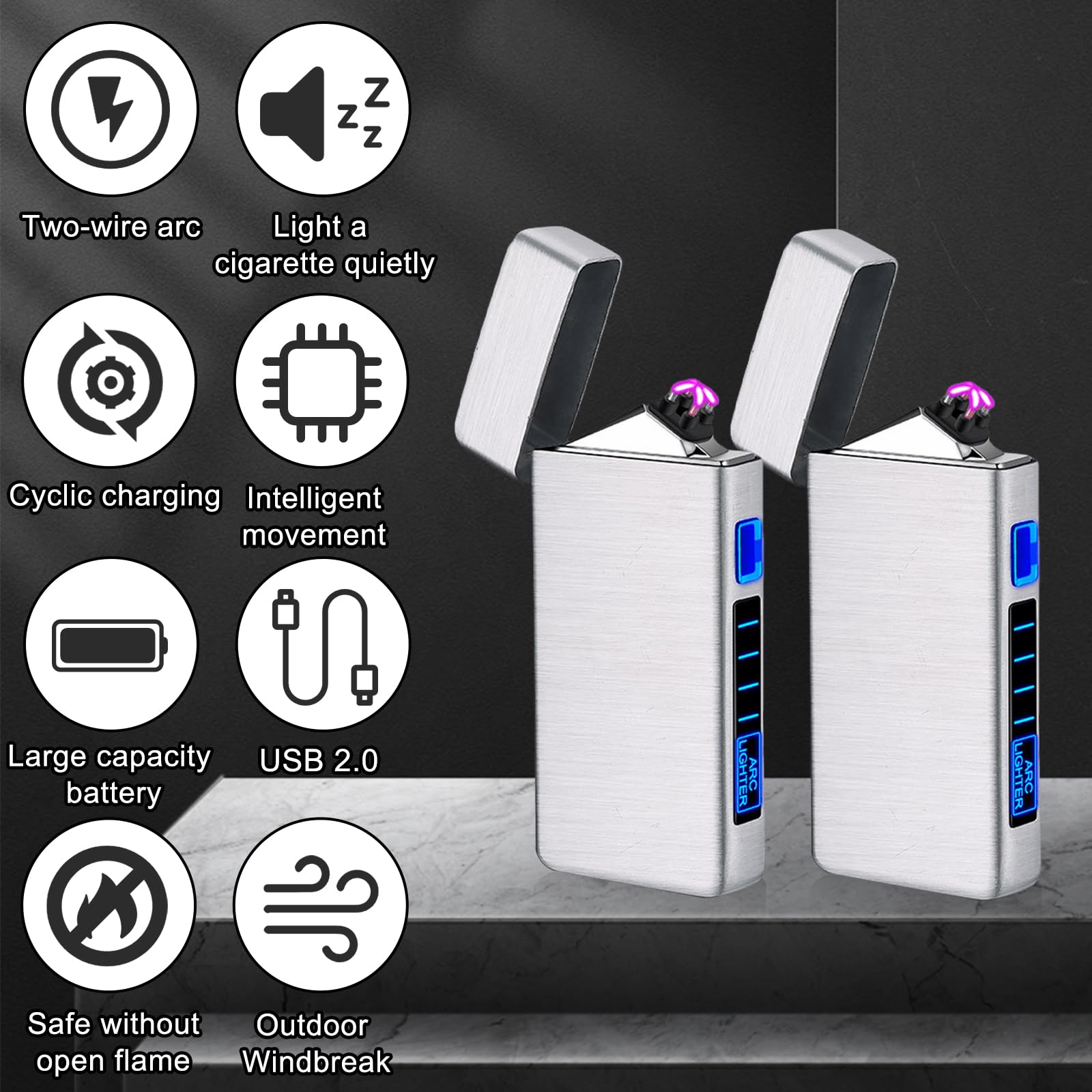 Briquet Électrique À Double Arc - Briquet Rechargeable Par Usb, Briquet Briquet électronique avec protection contre la surchauffe, la surcharge et les courts-circuits. Briquet USB Rechargeable Double Arc Briquet électronique USB à Double Arc électrique - Noir - Au Quotidien Briquet USB Design Moderne faisceau plasma, peut produire des étincelles d'arc, Il produit un arc électrique en appuyant sur un bouton, de la lumière en un rien de temps. Briquet Jet turbo mini BBQ | Briquets électroniques Briquets Électriques, Briquet À Arc Électrique, Briquet Usb, Double Arc... Protection de sécurité de la puce de mise à niveau : briquet électronique avec protection contre la surchauffe, la surcharge et les courts-circuits. Briquet tendance unique : le briquet rechargeable par USB est un remplacement parfait, boîtier en alliage de zinc, batterie au lithium intégrée, briquet arc de nouvelle génération, réutilisable, pas besoin de butane/gaz, fiable et sûr, économe en énergie, respectueux de l'environnement. Le briquet électronique USB dispose d'une protection d'arrêt automatique de 10 secondes, ce qui peut protéger le briquet électrique contre les températures élevées et les dommages. Briquet électronique USB magnifique pour une utilisation dans les boîtes de nuit, les pubs, les lieux d'événement, etc. Indicateur d'alimentation LED intelligent : briquet électronique avec batterie intégrée et conception rechargeable et avec 4 lumières LED pour indiquer l'état de la batterie. Briquet électronique avec batterie intégrée et design rechargeable et avec 4 lumières LED pour indiquer l'état de la batterie.