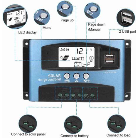 Contrôleur de charge solaire automatique 30A 12V 24V Contrôleur de Charge rapide] Le contrôleur de charge solaire prend en charge les protocoles de charge rapide à double USB et de type C, que vos téléphones portables et vos batteries rechargeables se chargent à la vitesse de la foudre, maximisant l'efficacité de vos appareils. [Résistant à la chaleur] - Notre contrôleur de panneau sol... Contrôleur Charge Solaire 20A EJ.life Contrôleur De Panneau Solaire Contrôleur De Charge Solaire Régulateur Solaire 12V/24V Intelligent Spécification: Type d'article: Bobine de bobine de doigt de plongée Condition: 100% tout neuf Matériel: alliage d'aluminium Poids: env. 4,7 cm / 1,9 pouces Diamètre de contrôle du doigt: env. Ce contrôleur prend en charge plusieurs types de batteries à durée de vie (BATT1), notamment scellées, gel, inondées, LiFePO4 et Li-NiCoMn, qui conviennent aux... 58g Couleur facultative: bleu, rouge, noir Diamètre: env. Double protection contre les courants inverses MOSFET, faible production de chauffage. Gestion complète des charges PWM en 3 étapes. Adoptez un microcontrôleur industriel, les paramètres de charge et de décharge peuvent être ajustés.