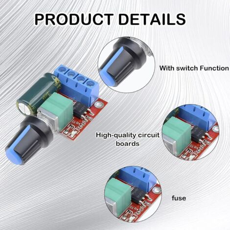 Contrôleur Vitesse Moteur DC Contrôleur De Vitesse De Moteur 5a - Test Et Avis Ventilateur Camion 12v Que ce soit pour réguler la vitesse d'un ventilateur, d'un moteur de voiture électrique ou d'un projet électronique, vous trouverez le variateur adapté à vos besoins. Profitez d'une qualité irréprochable et d'un rapport qualité-prix avantageux en commandant votre variateur de vitesse moteur 12v sur Jadeshay Variateur de Vitesse pour Moteur, Contrôleur de Vitesse de Il est largement utilisé dans le contrôle de la vitesse des équipements électroniques montés sur les véhicules, tels que les chauffages, les dégivreurs et les ventilateurs , 2., [Dissipation de la chaleur] Il s'agit d'un régulateur de vitesse de chauffage de ventilateur de voiture/camion avec un design de radiateur pour une meilleure dissipation de la chaleur , 3., [Spécifications] Le régulateur de vitesse de moteur 12V est adapté à une alimentation 12V ou 24V DC, et supporte une alimentation 12V haute puissance jusqu'à 120W et une alimentation 24V haute puissance jusqu'à 240W., 4., [Réglage facile] Tournez le commutateur progressif pour ajuster continuellement la vitesse, avec un courant nominal maximum de 10A , 5., [Câblage facile] Le câblage est simple et le contrôleur de vitesse est facile à utiliser, rouge : alimentation +, moteur + ; bleu : moteur - ; noir : alimentation -. Facile à installer et à utiliser : le contrôleur de vitesse du moteur adopte des bornes à vis, le câblage est pratique et rapide. Il est livré avec un bouton de... Il s'agit également d'une excellente solution de remplacement pour les pièces endommagées Facile à câbler, pratique à utiliser et excellent remplacement des pièces endommagées. Convient à l'alimentation DC12V ou 24V, prend en charge l'alimentation haute puissance 12V jusqu'à 120W, et 24V jusqu'à 240W., 1., [Régulateur de vitesse pour moteur à courant continu] Fabriqué en matériau PA très résistant, il résiste aux chutes et aux chocs et a une durée de vie plus longue. Courant thermique nominal : 10A, Taille : 62*27*30mm