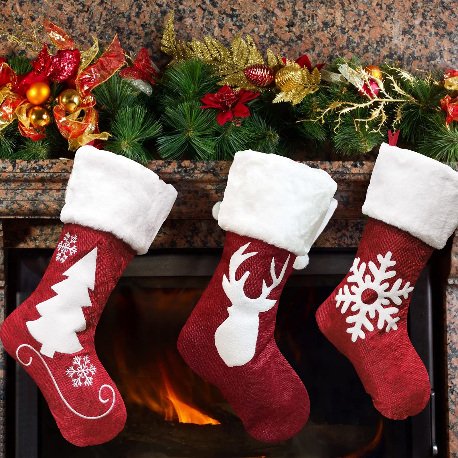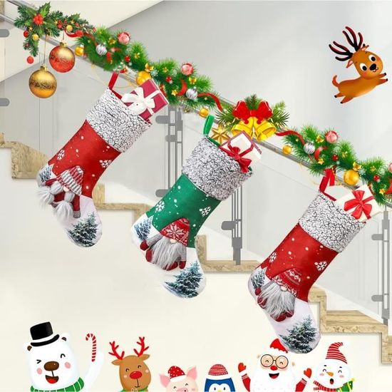Valicaer Chaussettes de Noël,Lot de 3 Chaussettes de Noël Bas de Noël à Suspendre pour Décoration de Sapin de Noël Bonhomme de Neige Renne Sac de Bonbons Grande Taille Botte de Noël pour Enfants, Adultes Caractéristique : Espace Interne Spacieux: les chaussettes d'hiver de Noël ont de grandes ouvertures et des espaces internes spacieux, offrant suffisamment d'espace pour remplir des cadeaux, des bonbons et du chocolat. Spécifications : Matériau : Tissu en flanelle Couleur : Rouge Taille : 37 * 26cm / 14 * 10,2in Le paquet comprend : 1 *Chaussettes de Noël Haute Qualité: Chaussettes de Noël à Suspendre pour Sapin de Noël des tissus de bride à haute qualité. Ils sont très adaptés à la fête de Noël, à la décoration d'arbre de Noël et aux cadeaux des enfants, qui peuvent ajouter de la joie à n'importe quel environnement de festival. Ils sont également lavables en machine, résistants et indéchirables, vous permettant ainsi d'emballer des cadeaux en toute confiance. 【Festival Animé】 : les chaussettes de Noël présentent un design 3D et des motifs soigneusement cousus, avec des motifs de Noël lumineux et colorés tels que des flocons de neige, le Père Noël et des rennes. à Suspendre Valicaer ,Lot De 3 Chaussettes De Noël CARS Lot de 3 chaussettes pas cher Ensemble de Six Pièces: Cet ensemble comprend six chaussettes de Noël différentes, chacune avec une taille de 37 * 26 cm / 14 * 10,2 pouces. Design des Fêtes: ces chaussettes de Noël montrent des motifs colorés et des thèmes de Noël charmants, y compris les flocons de neige, les wapitis et les arbres de Noël. 【Facile à Accrocher】 : chaque décoration de Bas de Noël est soigneusement cousue et est livrée avec un cordon élargi et renforcé. Taille spacieuse et pratique : avec une hauteur de 34 cm et une largeur de 18 cm, ces chaussettes de Noël pour enfants offrent beaucoup d'espace pour... Que vous choisissiez de les accrocher sur un arbre, sur la cheminée ou le mur, ces chaussettes resteront en place pour ajouter une atmosphère festive à la décoration de votre maison. La conception à large ouverture des bas offre un plus grand espace de rangement pour les cadeaux, tandis que les bords soigneusement cousus empêchent tout fil lâche et améliorent leur capacité de charge. Nos bas sont bien faits, durables et peuvent être réutilisés pendant des années, ce qui en fait un excellent investissement pour vos fêtes de fin d'année. Lot de 3 chaussettes de Noël Décoration de Noël Pendentif Sac cadeau de Noël Sapin de Noël, cheminée, vitrine, sac de bonbons ; i. Livré entre le 12/01 et le 15... Cela garantit que les chaussettes remplies de cadeaux de votre enfant durent plus longtemps et peuvent être accrochées facilement et en toute sécurité à un arbre, une cheminée ou un mur. 【Multifonctionnel et Largement Utilisé】 : l'ensemble comprend 3 Sac de Bonbons différents, chaque pièce mesure 37*26 cm/14*10,2 pouces. Suspension Facile: Chaque décoration de chaussette est soigneusement cousue avec une corde d'élargissement et de renforcement pour assurer une suspension sans sécurité et sans inquiétude.