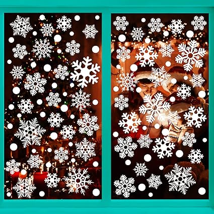 Stickers PVC Fenêtre Hiver 9 Feulles Noël Autocollants Fenetre, Flocons Décoraton De Noël Autocollants Fenêtre Noël Réutilisables Décoration Noël, Lot de 157 Autocollants pour Fenêtre de Noël en Flocons de Neige, Réutilisables, En PVC Statique, Pour la Déco de Fenêtre, Chambre d'enfant, Décoration d'hiver Autocollant flocons de neige - L.40 x l.40 cm - Gamm vert Parfait pour créer des décorations de Noël durables et réutilisables. 9 Feulles Noël Autocollants Fenetre, Flocons Décoraton de Noël... Motifs riches en couleurs et en détails : les habillages de fenêtre double face présentent des motifs de Noël classiques tels que le Père Noël, les bonshommes de neige, Rudolph, les flocons de neige et les sapins de Noël blancs dans des couleurs vives et des contours clairs, visibles de l'intérieur comme de l'extérieur, pour une décoration hivernale d'un niveau supérieur. Les autocollants pour fenêtres d'hiver constituent des décorations de Noël magiques pour les salons, les bureaux, les restaurants ou les vitrines de magasins et créent une atmosphère chaleureuse pendant la saison de Noël. MATÉRIEL RÉUTILISABLE DE HAUTE QUALITÉ : Nos autocollants de fenêtre de Noël sont fabriqués en PVC robuste, sans adhésif, et ne laisseront aucun résidu sur la surface vitrée. La variété de stickers autocollants pour fenêtres crée une atmosphère de Noël chaleureuse et le design en patchwork ajoute à la joie de la fête.