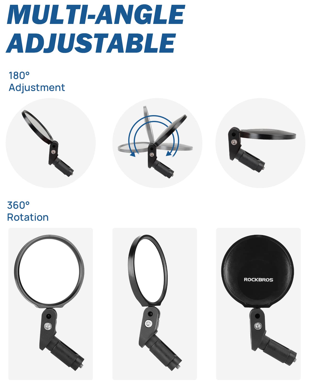 Rétroviseur Vélo Réglable 360 Rétroviseur Vélo Réglable Rétroviseur Vélo RoxNvm - Réglable 360° - Pour Guidon 17-22mm - Vélo, Moto, Trottinette Accessoire Cyclisme Sécurité Angle Mort Rétroviseur Vélo Réglable 360° Grand Angle 13cm Miroir Guidon Grand Angle Rétroviseur Vélo OITUGG Gauche - Grand Angle 14,5x5,5cm, Réglable 360° Miroir Vélo Grand Angle 14.5cm Arkha Rétroviseur de vélo Gauche,Rétroviseur Trottinette électrique... La barre du miroir est réglable à 90° et le miroir est réglable à 360°. Vous pouvez régler librement l'angle de vue de haut en bas ou de gauche à droite pour avoir une vue complète de tout ce qui vous entoure et conduire de manière plus sûre. Vous n'avez plus besoin d'ajuster constamment l'angle de vos rétroviseurs pendant la conduite. Le corps du rétroviseur est fabriqué en matériau ABS, avec une lentille en verre de 15 cm de large, qui peut fournir un champ de vision large et haute définition, vous permettant de voir facilement et clairement les véhicules et les obstacles. 【Robuste et Durable】Il se compose de matériaux ABS, de verre et d'alliage en aluminium, il est résistant à la chaleur, résistant à l'impact et résistant à la corrosion, pas facile à rouiller. Vous pouvez voir des véhicules et des obstacles facilement et clairement, ce qui réduit le risque de blessure. Convient pour le guidon 17-22 mm, équipé d'une clé à clé, plus pratique et rapide. Rétroviseur De Vélo Pour Vélo électrique - Rétroviseur De Vélo Rotatif...