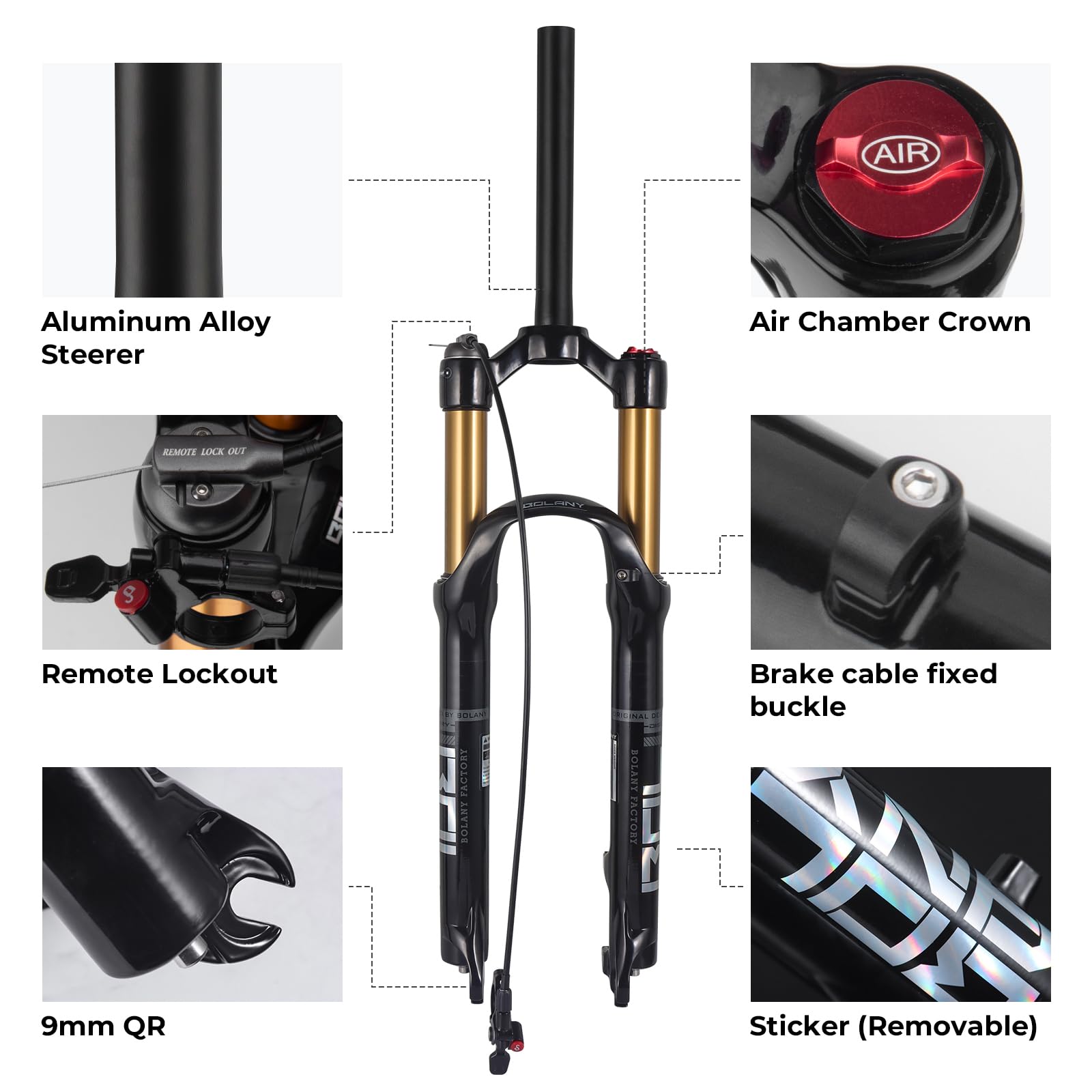 Fourche Avant Vtt Frein Disque Bolany – Fourche De Vélo Vtt En Alliage De Magnésium, Accessoire De Cyclisme, Vélos De Montagne Fourche VTT 27.5 29 Pouces Fourche vtt 26 - Achetez une variété de produits à prix abordables sur . Economisez avec notre option de livraison gratuite. Achetez en toute confiance et sécurité sur BOLANY Fourche de VTT 26/27,5/29 Air VTT Fourche à suspension 120 mm Débattement droit / tube fuselé en alliage de magnésium (26 commandes d'épaule conique axle 9mm * 100mm, type de frein: freins à disque. Fourche rigide VTT - Mixte - 26/27,5/29 pouces - Aluminium léger... Taille des pneus 1,5 ~ 2,45 pouces, plage de poids du cycliste 40 kg ~ 150 kg. Diamètre vertical du tube : 28,6 mmDiamètre du tube de levage : 32 mmLargeur de la fourche: 100mmAxe: QR 9 * 100mmTerleer : Tube droit (1-1/8 ») / Tube conique (1-1/2 »)Méthode de verrouillage : Verrouillage manuel (HL) / Verrouillage à distance (RL)Siège de frein : frein à disque sur montant A, disque de support de 160 mm (adaptateur de montage de 185 mm / 203 mm)Compatible : VTT 26/27,5/29 pouces, vélo tout-terrain XC, VTT, frein à disque, vélo ♥ TAILLE : 26/27,5/29 pouces en option, guidon à tube droit, verrouillage manuel., Débattement 140mm. ProduitNom: Fourche pneumatique de véloSource: Spot., Taille: 26/27., 5/29pcsÉpaulement de fourche : Alliage d'aluminiumPieds de fourche : alliage de magnésiumCourse : 140 mm.