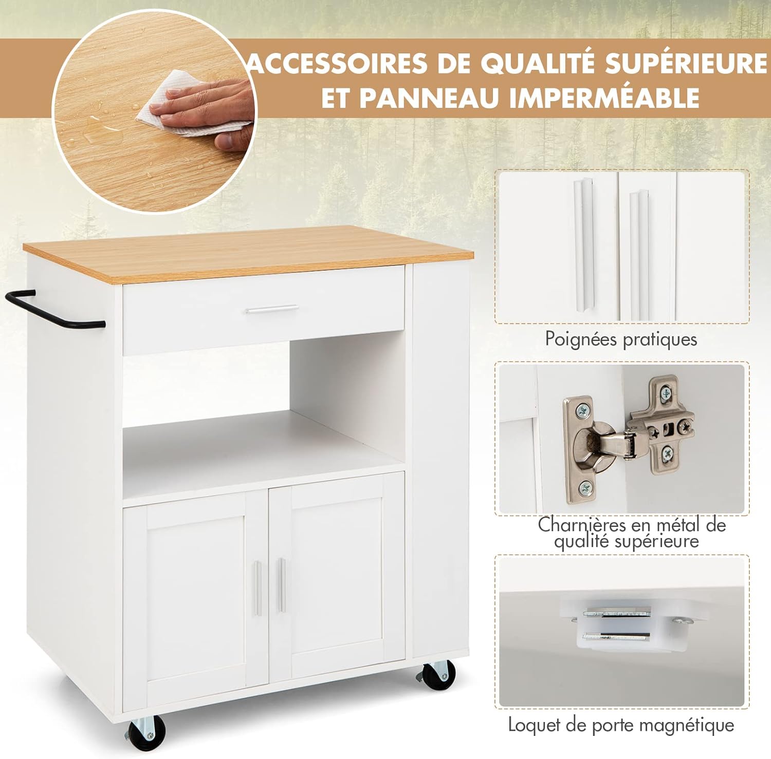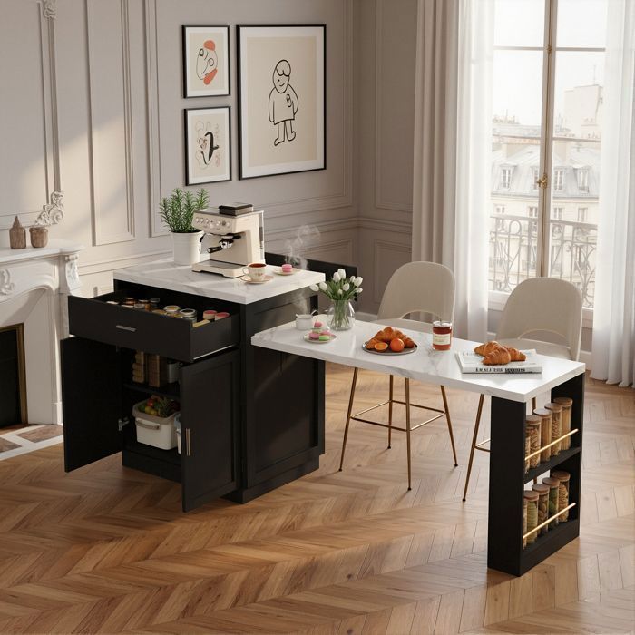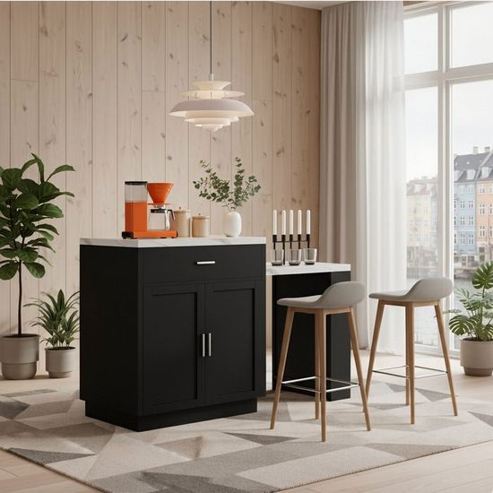 Desserte îlot Cuisine Îlot Central De Cuisine Mobile 120x70x90cm - 4 Tiroirs Et 1 Porte - 2 Gamelles Pour Animaux - étagères Réglables - Blanc Meuble Poubelle Cuisine Ensemble de rangement cuisine 2 pcs Vert olive 120 x 50 x 92 cm Îlot de cuisine, meuble de cuisine, buffet, 120 x 50 x 92 cm, desserte... - Montage Requis : Oui, environ 60 minutes - Instructions claires incluses pour un assemblage facile. - Contenu de la Livraison : 1 Îlot de Cuisine à monter + tous les accessoires nécessaires. - Nombre de Colis : 2 - Expédition sécurisée en deux cartons. - Poids du Produit : 53,25 kg - Une construction robuste pour une grande stabilité. Rangement cuisine optimisé - Ce buffet cuisine pratique dispose de deux portes, trois tiroirs et des tablettes réglables, faisant de cet îlot de cuisine un meuble de cuisine mobile au rangement exceptionnel. Pratique avec bac à déchets intégré - Grâce à son compartiment poubelle intégré, ce meuble de cuisine mobile garde votre îlot de cuisine propre et organisé, une fonctionnalité très appréciée pour un buffet cuisine moderne. Design épuré et intemporel - Son fini blanc et son plateau style bois permettent à ce buffet cuisine de s'adapter à tous les intérieurs, que vous utilisiez cet îlot de cuisine dans la cuisine ou comme espace de service dans le salon. Cuisine avec îlot central et table intégrée | Mobalpa