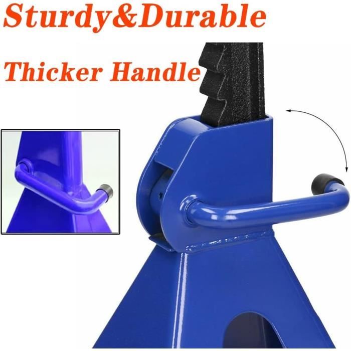 Chandelles à crémaillères 6t NORAUTO JS60 Réglage flexible de la hauteur : Les chandelles disposent d'une plage de réglage en hauteur allant de 360 à 585 mm. Cela permet d'adapter la hauteur de la crémaillère en fonction du châssis du véhicule, offrant une position optimale pour différents types de travaux et de véhicules Chandelles De Levage 6 Tonnes Chandelles à Crémaillères 6 Tonnes - 2 Pcs - KSTOOLS Chandelle Leclerc Cette paire unique de chandelles à forte capacité de charge de 6 tonnes a une hauteur de 390 mm à 585 mm (dimensions mesurées manuellement, erreur possible) et une capacité de charge nominale allant jusqu'à 6 tonnes chacune. Idéal pour la plupart des travaux d'entretien et de réparation sur les véhicules automobiles. Ces chandelles STIX supportent jusqu'à 6 tonnes (3T par unité). La hauteur se règle facilement sur 13 positions (de 36 à 58.5cm) grâce au système à cliquet. La... Caractéristiques principales de ce cric à vérins : cliquet réglable pour un réglage rapide et facile de la hauteur, surface d'appui plus grande pour une stabilité accrue. [Construction robuste en aciere] Fabriqué en acier renforcé, ce CDZHLTG chevalet de levage allie résistance et durabilité, conçu pour un usage intensif. [Réglage par cliquet et grande surface de base] Système de réglage par cliquet pour un ajustement rapide et précis de la hauteur (390-585 mm), avec une base élargie assurant stabilité et sécurité. [Capacité de charge élevée] Chaque chandelle supporte une charge maximale de 6 tonnes, offrant une capacité totale de 12 tonnes pour la paire.