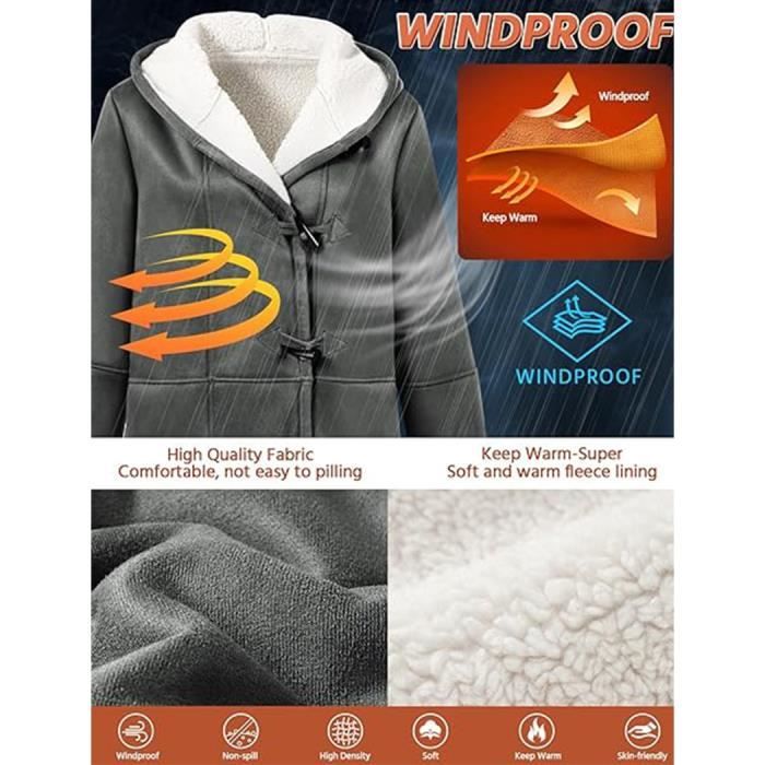 Veste Polaire Manteau Polaire Avec Fermeture éclair En Sherpa Fire Side II Femme Polaire Mi-saison Poches Meichang Sweat à Capuche Doublé Sherpa Pour Femmes Grande Taille Fermeture Clair Compl Te Veste En Polaire Manteau D Hiver Chaud Manches Longues Unie Av Veste polaire à fermeture éclair avec poches pour femme - Long sweat à capuche sherpa surdimensionné - Manteau d'hiver chaud · Current Price is . $27.99 · Current... Idéal en toute saison. Coupe ample, la veste offre une grande liberté de mouvement, elle épouse la poitrine, la taille et les hanches, elle est confortable sans être trop serrée. CARACTÉRISTIQUES PRATIQUES : Fermeture éclair sur toute la longueur, capuche réglable avec cordon de serrage et grandes poches kangourou pour plus de praticité et de fonctionnalité. MATÉRIAU DE QUALITÉ SUPÉRIEURE : Confectionné dans un mélange polaire doux et chaud de coton et de polyester, ce modèle beige polyvalent est idéal pour la superposition et le confort au quotidien. spécialement conçu pour toutes les activités de plein air, ce manteau vous accompagnera partout. Cette veste pour femme se marie parfaitement avec un jean, un pantalon en coton, un pantalon de sport, un pantalon long et des bottes hautes. lavage à la main ou en machine à 32 °C maximum, ne pas blanchir, ne pas repasser, ne pas nettoyer à sec. Découvrez la chaleur naturelle de la laine, dans le confort d'une polaire à poils longs : notre nouvelle collection de vestes à capuche femme en polaire