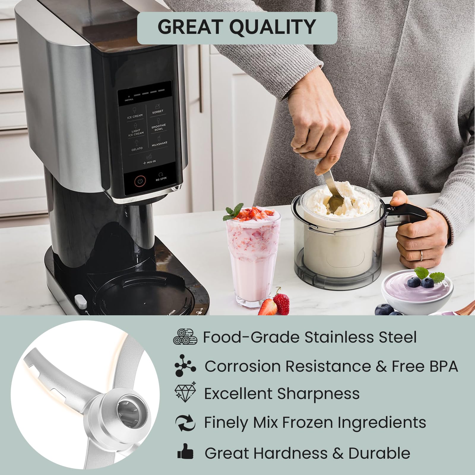 Lame de rechange pour Ninja CREAMi Deluxe Ensemble, ils transforment vos ingrédients surgelés en une gâterie lisse veloutée, Retirer les glaçons indésirables de votre glace, Donner vos papilles gustatives sur des surprises sans fin. Lame Ninja Creami Nc300 Lame De Rechange Pour Machine à Crème Glacée Ninja Creami NC300, Compatible Avec Ninja NC299AMZ NC300 NC301 CN305A, Lame De Rechange Pour Ninja Creami Blade Lame Pagaie NC300 Acier Inox Design Unique - La lame de palette de remplacement pour le Ninja Creami NC300EU, NC301EU avec une conception de 4 lames, La lame incorpore deux formes de lame différentes. Ninja CREAMi Deluxe 10-en-1 Machine à glace et Blender portable sans... Les lames de rechange pour sorbetière sont fabriquées en acier inoxydable durable de qualité alimentaire, résistantes à la corrosion et sans BPA. Elles garantissent une utilisation longue durée et préservent la sécurité de vos glaces maison. Design Unique - La lame de palette de remplacement pour le...UNIQUEMENT compatible avec Ninja swirl by creami machine a... Veuillez vous assurer que les ingrédients congelés du fabricant de crème glacés Ninja sont complètement de niveau avant de commencer à mélanger. Un Investissement Solide - Notre aimant à lame pour Ninja Creami Peut remplacer vos lames brisées / ternes / usées d'origine pour vous économiser du montant d'argent en achetant un autre nouveau fabricant de crème glacés coûteux. Si ce n'est pas plat, Vous pouvez endommager la lame de pagaie Ninja Creamli, Et il y a aussi une chance qu'il puisse se répandre du couvercle pendant le processus de mélange. Modèles Compatibles - Le remplacement de la lame à palette uniquement pour Ninja CREAMi Sorbetière & Fabrique à Desserts Glacés NC300EU NC300EUCP NC301EU NC299AMZ series. C'est un excellent rapport qualité-prix. Lame de palette de remplacement compatible avec Ninja CREAMi Sorbetière & Fabrique à Desserts Glacés NC300EU NC300EUCP NC301EU NC299AMZ series, Acier inoxydable, argent.