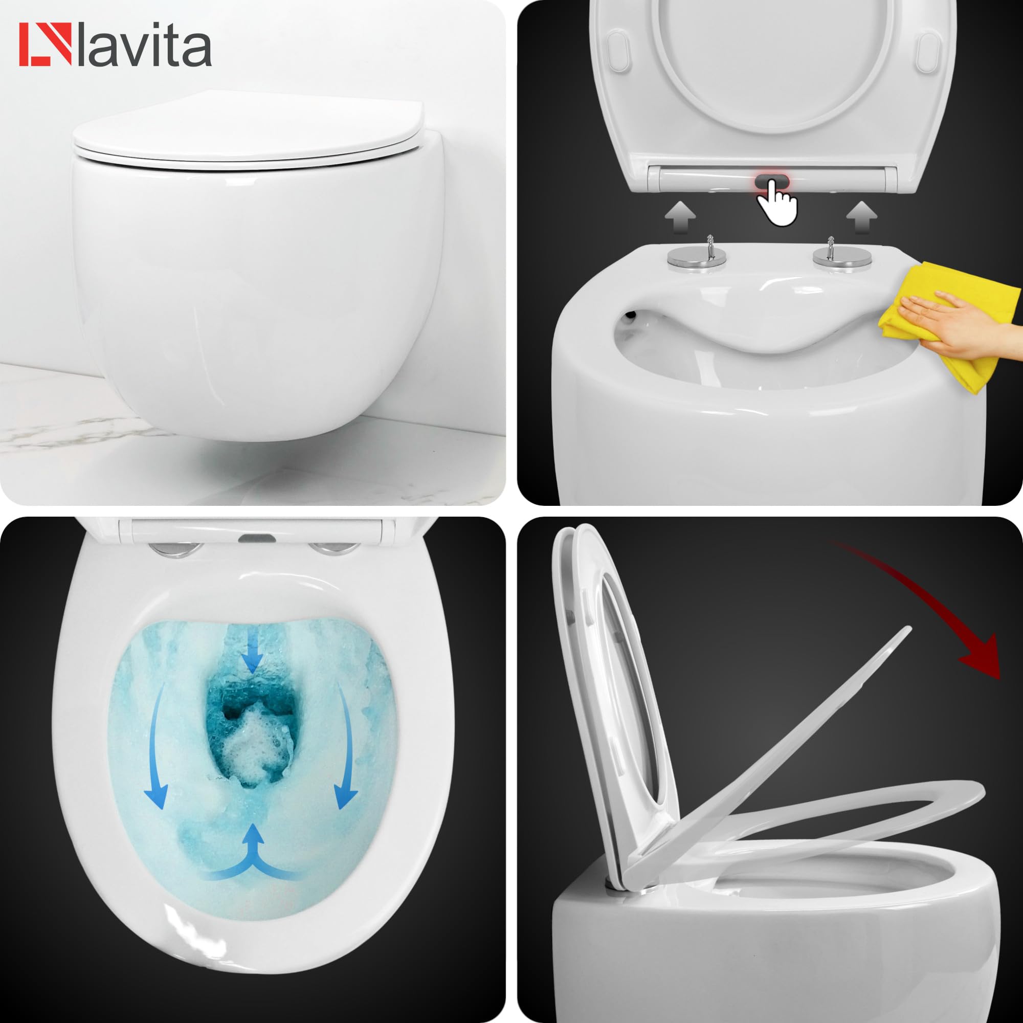 Cette solution contribue à maintenir un maximum d'hygiène dans la salle de bain avec peu de temps et d'énergie. Technologie de rinçage innovante : le réservoir de chasse d'eau encastré isolé empêche la condensation et permet un rinçage silencieux et efficace. Design sans bord avec montage invisible, empêche l'accumulation de saleté et de bactéries. Nous avons fabriqué le modèle LAV 101 à partir de matériaux de la plus haute qualité, de sorte qu'il est fiable pendant très longtemps. Kit de quincaillerie pour porte pliante coulissante - 78, 136, 183, 300 Salle de bain moderne - Élément d'installation murale - Le produit est destiné à l'installation d'une cuvette de WC. Cela rend le montage extrêmement facile. Pack complet : lavita LAV 101 Élément mural pour WC 40 cm évier mural profond Sofi Slim Gold Never Die sans bord panneau de commande LAV 200.3.1 Blanc pour... Le design incurvé suspendu au mur permet de nettoyer les zones difficiles d'accès. Contenu du kit : élément mural lavita LAV 101 pour WC 40 cm, plaque de déclenchement lavita LAV 101 : avec une largeur de 400 mm, l'élément d'installation murale LAV 101 convient également aux petits espaces où il permet d'économiser de l'espace et a une grande valeur esthétique. La quantité de chasse réglable offre flexibilité et économie d'eau, tandis que le montage sans outil simplifie l'installation. Cuvette Sans Bord Rinçage Efficace RIM Lavita LAV 101 Élément Mural Pour WC 40 Cm + évier Mural Suspendu SOGO Blanc Sans Bord + Panneau De Commande LAV 200.3.4 Noir | Kit Complet | Réservoir De Chasse Encastré | WC Complet Toilette Suspendu Complet Hygiène maximale : le nano-revêtement sur la surface des toilettes empêche le dépôt de saletés et de bactéries, garantissant ainsi une hygiène durable. La... Économe en eau et nettoyage facile : le système de rinçage respectueux de l'environnement permet d'économiser de l'eau sans sacrifier les performances.