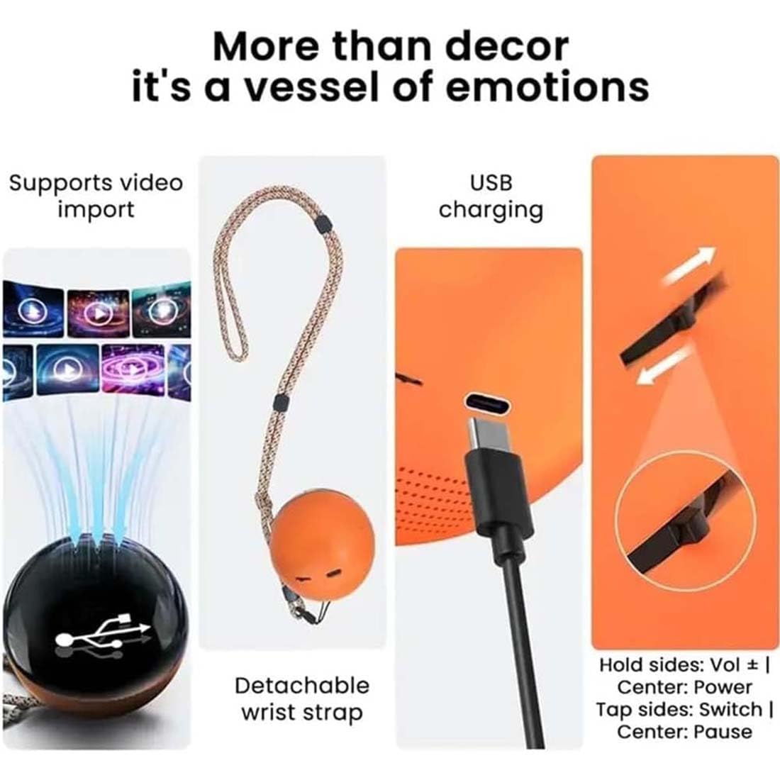 Core Memory Orb - Sphère de mémoire 3D pour Photos et vidéos Expérience visuelle vive : profitez d'un son surround riche et immersif qui remplit la pièce. Memory Orb Boule Vidéo MemoryOrb Lampe Sphère à Mémoire De Forme Avec Lecteur Vidéo Lamp Sphere Nous vous remercions de votre compréhension., 2., La couleur réelle du produit peut paraître légèrement différente de celle de la photo en raison des variations de paramètres de votre écran et de l'éclairage. La boule de cristal Wi-Fi Lumiorb – sphère photo et vidéo 3D avec haut-parleur intégré – se synchronise avec votre vidéo pour une connexion réaliste et émotionnelle avec vos moments les plus précieux Achetez Memory Orb, lampe sphère à mémoire de forme de 6,9 cm, boule de cristal vidéo, vidéos et photos téléchargeables, souvenir de moments de famille, rechargeable par USB, boule de cristal 3D pour : Veilleuses Visuels éclatants, tout autour : profitez d'images nettes et de mouvements fluides sous presque tous les angles. Téléchargez facilement vos propres vidéos, photos et musique via USB pour revivre des moments précieux. Facile à mettre à jour à tout moment : connectez la vidéo en forme de boule de cristal à votre ordinateur ou ordinateur portable via le câble inclus, puis faites glisser et déposez de nouvelles vidéos ou images en quelques secondes. Couleur : blanc, noir, orange, bleu, rose. Avec des commandes intuitives, il suffit d'ouvrir, de jouer et d'être transporté : regardez les souvenirs de famille ou les voyages panoramiques prendre vie avec le son et le mouvement Caractéristiques : Nom : lecteur vidéo Crystal Ball., Matériau : verre., Batterie : batterie.