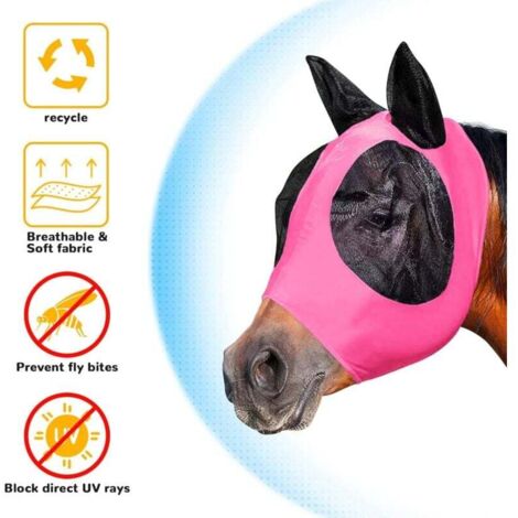 Contenu de l'emballage : 1 masque anti-mouches pour cheval. Taille L Cheval Masque Anti-mouches Pour Cheval Kentucky Slim Fit - Protections Masque Cheval Protection UV Avec Oreilles Durable et robuste : conçu pour un usage quotidien exigeant, ce bonnet anti-mouches pour chevaux est extrêmement résistant. Confort maximal : ce masque anti-mouches pour cheval est fabriqué en tissu en maille particulièrement doux, léger et respirant pour éviter les frottements. Avec le masque anti-mouches pratique en forme de cheval avec fermeture , la taille peut être ajustée rapidement et facilement, de sorte que le masque est bien ajusté sans glisser ni presser, idéal pour les poneys, les pur-sang et les animaux à sang chaud. Grâce au matériau indéchirable et aux doubles coutures renforcées, ce masque Horse Fly résiste à une utilisation intensive. Le tissu en maille fine assure une vision claire et sans restriction à tout moment afin que votre cheval puisse s'orienter en toute sécurité. Notre masque anti-mouches pour cheval soigneusement conçu a été conçu pour offrir une protection complète contre les mouches tout en assurant un confort optimal. Protection complète : notre masque anti-mouches pour cheval offre une protection fiable pour les zones sensibles du visage, des yeux et des oreilles. Un design spécial 3D sur les yeux assure une distance sûre des cils et empêche toute irritation. Le design spécial 3D du masque de cheval au niveau des yeux garantit une distance sûre des cils et assure un confort maximal, même en cas de port toute la journée. Une solution durable qui répond aux défis quotidiens sur le couplage et l'entraînement. Masque d'Équitation Anti-Mouches en Lycra Pro-Tech Un masque anti-mouches et anti-uv intégral pour une protection parfaite de votre cheval contre les insectes. (4 avis). Prix 27,95 €. Ajouter au panier · Plus d... Offrez à votre cheval la tranquillité qu'il mérite. Caractéristiques du produit : - Grand confort et protection des yeux : le masque anti-mouches pour cheval avec oreilles est fabriqué en maille douce, respirante et légère. Le masque de cheval bien pensé éloigne les insectes gênants tels que les mouches et les moustiques et assure ainsi plus de tranquillité et de bien-être à votre animal dans le pâturage et dans l'écurie. La protection anti-mouches ultime pour votre cheval – Calme et confort pour tous les jours.