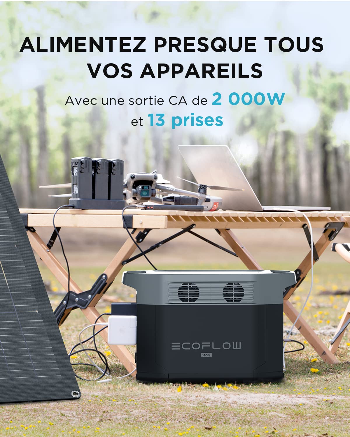 Ecoflow casse les prix sur ses batteries et panneaux solaires Permet de faire fonctionner les appareils pendant des heures. Generateur Electrique Solaire ECOFLOW Delta Max Générateur Solaire 1612Wh Avec 220W Panneau Générateur Solaire Ecoflow Delta Max Peut être utilisé avec des couvertures chauffantes électriques ; affronte le froid en hiver. Le Kit solaire pour balcon EcoFlow PowerStream : Modèle 2025 - Générateur Solaire Générateur solaire LFP EcoFlow Delta 2 Max, puissance de sortie de 2 400 W et protection contre... 【Contrôle à distance】Avec l'appli EcoFlow, vous pouvez surveiller la centrale portable, la contrôler et plus encore. Pas de fumées, totalement portable, pas de bruit et recharge renouvelable. Tout cela pendant que le BMS interne assure votre sécurité. Idéal pour les coupures de courant. Générateur d'énergie idéal pour fournir de l'énergie de réserve. 【Recharge solaire rapide】Avec une entrée solaire allant jusqu'à 800W, DELTA Max est un générateur solaire qui se charge rapidement.