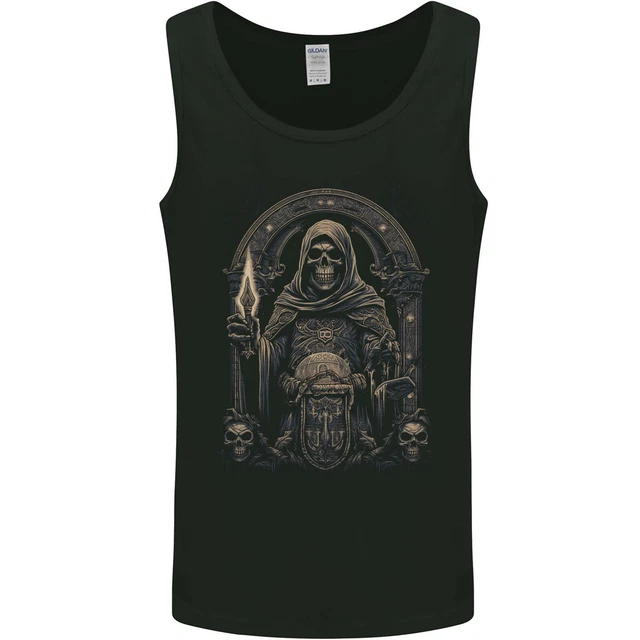T-SHIRT HOMME LUTTEUR crâne gothique Afterlife Grim Reaper Death FotL Léger, Coupe classique, manche à double couture et ourlet à la base Haut Imprimé Crâne Rouge Death Reaper Crâne De Guerrier Gothique Avec Illustration Vectorielle Bandana Rouge Top Streetwear Imprimé Skull Entrez dans le monde de l'allure sombre et du charme rebelle avec notre débardeur pour hommes Wasted Life Grim Reaper Gothic Biker Skull. Conçu pour ceux qui aiment l'individualité, ce gilet est un mélange de style avant-gardiste et de confort GRIM REAPER HORLOGE Crâne Biker Gothique Démon Hommes Gilet Débardeur...