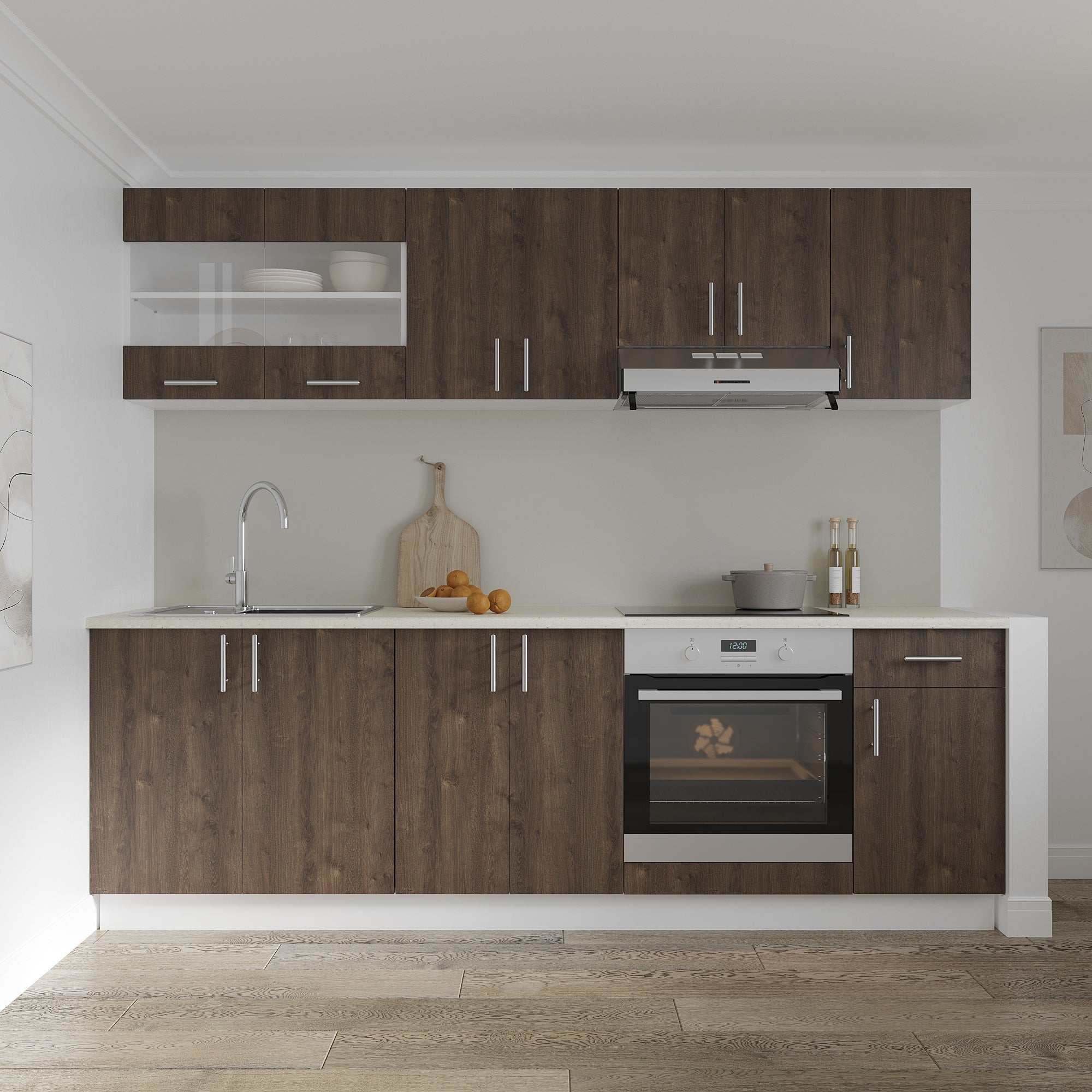 Caractéristiques techniques : - Bois certifiés FSC, issus de forêts gérées durablement. MUEBLE DE COCINA KITS PARANA STYLE Composée d'un meuble bas et d'un meuble haut à suspendre., 6 Portes et 1 Tiroir., LINE. Cuisine équipée Montage Facile Cuisine Equipée 6 Portes 1 Tiroir Chêne Et Blanc L 150 H 200 P 53.3 Cm Cuisine Equipe - 1 Meuble Bas sur pieds - 1 Meuble Haut à fixer au mur. Dimensions utiles : - 3 Niches hautes fermées : Largeur 47., 9 cm Hauteur 41., 5 cm Profondeur 26., 8 cm - Niche haute ouverte : Largeur 150 cm Hauteur 20 cm Profondeur 16 cm - 1 Niche basse fermée à gauche : Largeur 47., 9 cm Hauteur 27., 6 et 25., 1 cm Profondeur 50 cm - 1 Niche basse fermée au centre : Largeur 48 cm Hauteur 27., 6 et 25., 1 cm Profondeur 50 cm - 1 Niche basse fermée à droite (1 porte) : Largeur 48 cm Hauteur 36 cm Profondeur 50 cm - Tiroir : Largeur 42., 5 cm Hauteur 8 cm Profondeur 38., 5 cm - Pieds : Hauteur 17 cm Montage : - Meuble Livré démonté - Difficulté de montage : Moyennement Facile - En bas de la page, vous pouvez télécharger la notice de montage. Cuisine Equipée 6 Portes 1 Tiroir Chêne et Gris L 150 H 200 P 53.3 cm... Largeur 150 cm Hauteur à votre convenance environ 200 cm Profondeur 53., 3 cm., 9 Niches, 1 Tablette. Ne pas surcharger le meuble pour éviter tout risque de basculement ou de dommages. Buffet de cuisine contemporain avec 6 portes, 1 porte vitrée sérigraphiée et 1 grand tiroir. Dimensions : 90.9 cm de large, 173.5 cm de haut et 36.3 cm de profondeur. Finition imitation chêne et gris structuré. Idéal pour la salle à manger, il offre 7 niches et un montage facile. Livraison gratuite sous une semaine Avertissement De Sûreté Assembler avec prudence en respectant les instructions fournies. - Une notice de montage papier sera jointe au meuble. Cuisine Equipée - Kitchenette. Description du produit Cuisine Equipée Kitchenette 6 Portes et 1 Tiroir Imitation Chêne et Gris Structuré Largeur 150 cm Largeur 150 cm Profondeur 53., 3 cm Hauteur : environ 200 cm, selon votre choix. Coloris Imitation Chêne + Façade Gris Structuré.