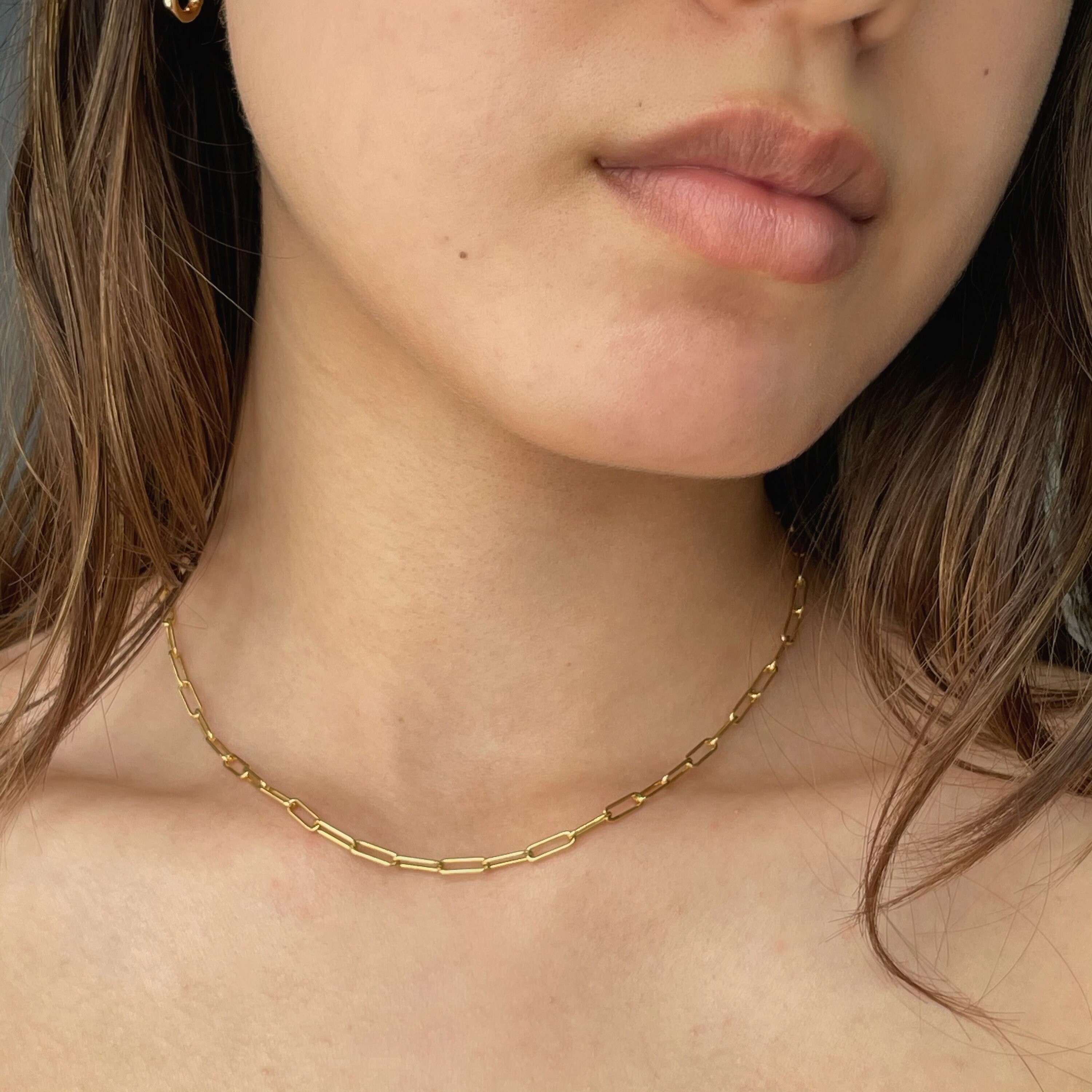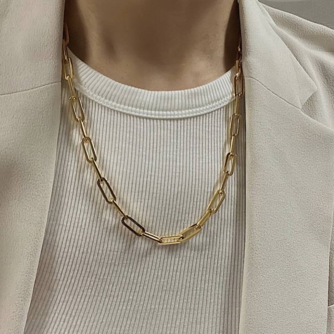Collier de chaîne de Trombone en Or 18K Taille: il existe plusieurs types de tailles pour votre choix, 3., > Collier Unisexe Minimaliste Collier Chaîne Trombone En Or 18 Carats (3 Mm Collier Or 18 Carats 3 Mm Fabriqué en acier chirurgical plaqué or de haute qualité, ce collier associe durabilité et finition luxueuse. Le design tendance de la chaîne en trombone, réglable jusqu'à 50 cm (20 po.), assure un ajustement parfait et ajoute une touche contemporaine à toutes vos tenues Chîne collier en or june 18 crts vec dimnts nturels N086997...