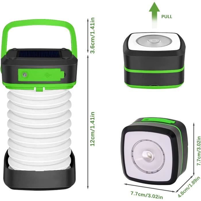 Lampe de Camping Solaire LED Portable et Rétractable - Urgence et Sauvetage 2 MODES DE CHARGE : Notre lampe de camping LED a deux modes de charge. Lampe Pliable Extérieur Horuili® Lampe De Camping LED Portable, Lampes De Camping à énergie Solaire, Lampe De Camping étanche, Chargement USB, Luminosité Variable, Pour L' Exploration, Le Camping, La Pêche, Les Urgences Lampe De Camping Rechargeable Ajoutez de la lumière à votre aventure de camping en plein air. La lanterne est parfaite pour les situations d'urgence en interieur telles que les pannes de courant, ainsi que pour le camping, la randonnée et la pêche en exterieur Lampes camping,Lanterne LED solaire en forme d'ovni,lanterne Portable,Rechargeable par USB... MATÉRIAU DE HAUTE QUALITÉ : La lampe de camping portable est fabriquée dans un matériau de haute qualité, étanche, et peut être utilisée par temps de pluie et de neige. Avec le panneau solaire sur le dessus, vous pouvez placer la lampe à la lumière du soleil pour la charger. Veuillez ne pas la laisser tremper dans la pluie pendant une longue période, afin de ne pas affecter son utilisation. DESIGN PLIANT : Notre lampe de camping peut être pliée, compacte et légère, facile à transporter et à ranger, et ne prendra pas beaucoup de place. Vous pouvez également utiliser le port USB pour la charger. Lampe de camping LED portable