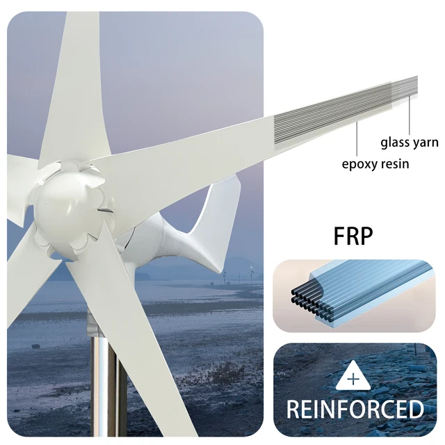 Structure en spirale : le produit a une structure en spirale qui permet au produit de tourner dans le plan horizontal pour créer une faible pression de vent qui peut résister aux typhons forts. Diamètre du raccord de la tige : 5,6 à 6,2 cm., Montage requis : oui. Procédure : pulvérisation plastique Type de générateur : générateur de lévitation à aimant permanent en fil de cuivre. Matériau : fibre de nylon, aluminium, cuivre, acier inoxydable. Dimensions de l'emballage : 86 x 38 x 20 cm., Poids brut : 10 kg., Poids net : 8,6 kg. Dimensions du produit : 53 x 75 cm. Kit éolienne Aimant Permanent Autoconsommation Kit D'éoliennes, Générateur D'éolienne, 300 W, 6 Pales, Démarrage De La Vitesse Du Vent Générateur éolien 12v Générateur vertical 12V 600w avec régulation interne Nombre de trous de bride : 4., Diamètre du trou de bride : 1,4 cm. Caractéristiques techniques : Couleur : blanc. Autres accessoires nécessaires. La turbine adopte un moteur à aimant triphasé, un contrôleur MPPT externe et un cerceau installé pour vous offrir une efficacité énergétique élevée et une installation sans effort Vitesse du vent sûre : 35 m/s/78,29 mph Vitesse du vent de démarrage : 2,5 m/s/5,59 mph Température de fonctionnement : -40 à 80 °C., Bruit : 30 dB. Énergie verte : l'énergie éolienne est une source d'énergie propre et renouvelable. 1 unité de contrôle. Générateur à aimant permanent personnalisé pour les fournisseurs d... Longue durée de vie : le produit est fabriqué en fibres de nylon, d'aluminium, de cuivre, d'acier inoxydable et d'un processus d'injection plastique qui rend le produit résistant à la corrosion et aux chocs, de sorte qu'il ne se déforme pas et reste brillant et pratique même avec une utilisation à long terme. Conception fiable : le générateur à aimant permanent se caractérise par de faibles pertes, une puissance élevée et un faible couple pendant le démarrage, ce qui garantit une efficacité de conversion d'énergie élevée et un fonctionnement fluide et fiable. Tension nominale de la batterie : 12 V/24 V.