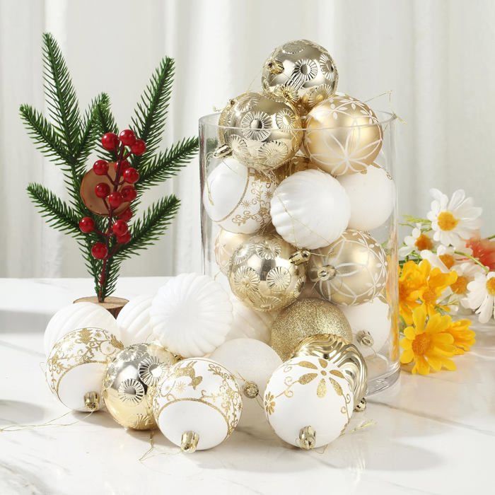 Ce set comprend douze pièces en blanc et or, parfaites pour créer une ambiance hivernale sophistiquée. Décoration Sapin Boule 8cm Pvc Boules De Noël Gonflables Cm - Énorme Décoration De Noël En PVC Avec Pompe, Perfect Ornements Noël Blanc Or Lot 12 Leur design en relief capture Boucle de Suspension Renforcée: La boucle robuste de ces boules de Noël garantit une suspension fiable sans inquiétude, en supportant des présentations stables sur les branches, les étagères ou les cadres de porte. Accent Festif Radieux : Les boules de Noël pour sapin sont conçues avec des textures en relief qui optimisent le jeu de la lumière, offrant un scintillement radieux et élégant pour rehausser l'ambiance de tout décor de fêtes ou de célébrations familiales. Parfait pour un usage intérieur et extérieur, il maintient son apparence vibrante tout au long de la saison des fêtes et au-delà, quelles que soient les conditions météorologiques. Ensemble de 12 boules de Noël décoratives • Vintage Univers Application Multi-Scènes Les boules de Noël exhibent des détails complexes associés à des tons vintage riches, offrant une versatilité améliorée pour une utilisation en multi-scènes. Idéales pour une utilisation intérieure comme extérieure, ces décorations conviennent pour embellir des sapins, des rampes d'escalier, des vitrines, et bien plus encore. Améliorez votre décoration festive avec ces décorations de Noël incassables pour arbres, conçues pour allier élégance et durabilité. Elle permet aux utilisateurs de concrétiser leurs concepts de décoration sans interruptions ni accidents, une décoration de Noël créative et sécurisée pour toutes les envies décoratives. La durabilité de ces ornements de Noël assure une décoration festive éclatante pour diverses occasions. Boule de Noël en céramique, présentée dans une boîte élégante. Son design coloré s'inspire des mosaïques florales vibrantes, combinant des tons bleus, jaunes et rouges. La décoration capture l'essence artistique des festivités comme celles de l'Andalousie, avec une forme arrondie qui rappelle les décorations traditionnelles. De plus, elle comprend un ruban rose qui facilite sa mise... Petits prix et livraison gratuite dès 25 euros d'achat sur les produits Générique. Commandez Boules de Noël - 24 Pièces De Décorations Sphériques en Gros Lot | Ensemble de Boules de Noël de 3,0 cm | pour la Danse, Les Fêtes, Les Mariages, la Cour, l'Intérieur, la Porte d'Entrée et Le Jardin Idéales pour créer des thèmes décoratifs spéciaux pour les fêtes ou toute l'année, ces ornements s'adaptent à les styles de décoration intérieure et extérieure, une personnalisation facile et une intégration harmonieuse dans divers environnem Elles établissent facilement un environnement festif sophistiqué et invitant, adapté à divers cadres comme le salon, les fêtes ou la décoration générale, en s'intégrant avec style et grâce pour créer une ambiance chaleureuse et élégante lors des célébrations. Leur design polyvalent en fait un choix idéal pour les célébrations d'engagement, les mariages, la décoration de magasins ou les soirées festives. Solutions de Décoration Flexibles Les boules de Noël pour sapin offrent des options d'arrangement flexibles, permettant aux utilisateurs de réaliser une satisfaction de décoration thématique en sélectionnant parmi une collection multi-motifs.