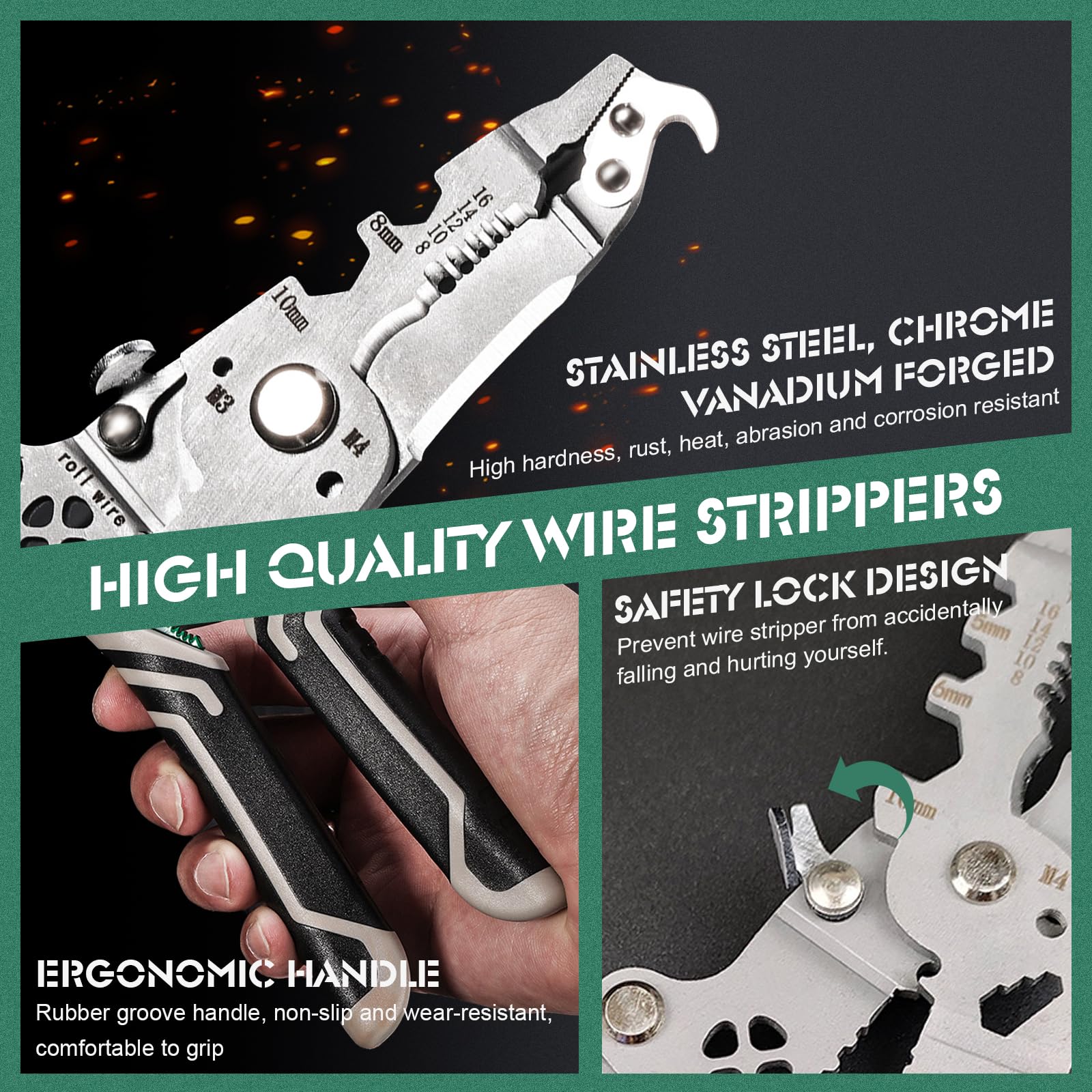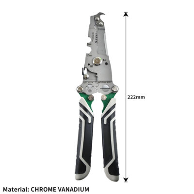 Pince à Dénuder Pliable 18 In 1 Foldable Wire Stripper,Multifonctionnel Pince à Dénuder Acier Inoxydable,Pince A Sertir Pour Dénuder Et Couper Câbles,Professional Pince A Denuder Electricien Outil électricien Professionnel SALUTUYA Dénudeur de fil Dénudeur de cble multifonctionnel Pince à 18 In 1 Foldable Wire Stripper,Multifonctionnel Pince à Dénuder Acier... 【Large gamme de dénudage】La pince à dénuder possède d'excellentes capacités, une conception précise des trous de vis sur la poignée, adaptable aux différentes spécifications de l'écrou à vis, peut dénuder le fil entre 0,08 mm et 1,6 mm, une coupe précise, préservant l'intégrité du fil. Les pinces à dénuder sont sans aucun doute le meilleur choix dans la boîte à outils d'un électricien, travaillant en harmonie avec d'autres outils de base. Cette pince à dénuder est dotée de poignées rainurées recouvertes de caoutchouc pour assurer une prise en main stable et antidérapante, réduire la fatigue de la main causée par une utilisation prolongée, de sorte que le travail est plus fluide et plus efficace. 【Pince à dénuder】Cette pince à dénuder polyvalente permet de répondre aux divers besoins liés aux problèmes de câblage. 【Sûre et portable】Cette pince à dénuder pliable est facile à transporter et à ranger, parfaite pour les professionnels, la conception pliée n'affectera pas la fonction. Cette pince à dénuder électrique est dotée d'une fonction innovante de verrouillage rapide à un bouton, pour un rangement sûr, afin d'éviter de glisser accidentellement et de se blesser, ce qui améliore l'efficacité de votre travail. La pince à dénuder est un outil polyvalent pour la construction, l'entretien des moteurs, l'amélioration de la maison et les amateurs d'artisanat, capable de répondre facilement aux besoins de dénudage, de coupe et de sertissage de fils de tailles et de types différents, c'est un outil polyvalent indispensable dans la boîte à outils d'un électricien. Cette pince à dénuder, conçue pour les électriciens, regroupe les fonctions de coupe, dénudage, sertissage, pliage, enroulement, fendage, serrage et clé à molette