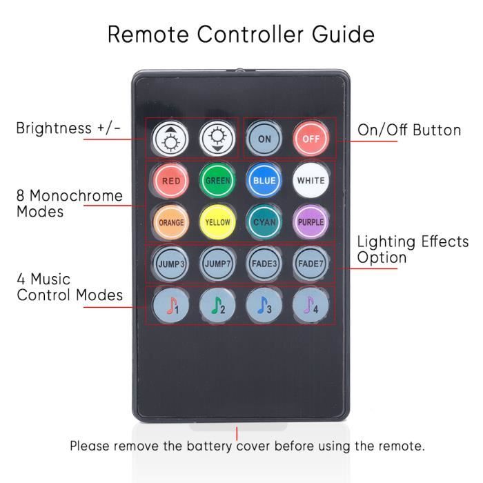 Large Application: cet éclairage intérieur LED pour voiture convient aux voitures, motos, drones, skateboards, camping, pêche, randonnée, urgences de camion, etc. Lumière Voiture Multicolore Acheter Voiture Néon LED Voiture 48 SMD Intérieur Ambiant Pied Lumière Avec USB Sans Fil À Distance Musique App Contrôle Voiture RVB Ambiance Décoration Lumière éclairage Intérieur Usb Rechargeable Spécifications du produit: Couleur: Noir Matériau: Batterie au Lithium Capacité de la batterie: 110 mAh Temps de charge: 1 heure Taille: 4., 1 x 2., 65 x 1., 3 cm Poids: 7., 5 g Contenu de la Livraison: 6 x Éclairage Intérieur de Voiture 1 x Télécommande 1 x Câble de Chargement USB Composé de 4 pièces, il offre 7 couleurs différentes pour créer une ambiance unique dans votre véhicule. Facile à installer, ce kit de lumière d’ambiance pour voiture est livré avec une télécommande sans fil pour un contrôle rapide et pratique Il peut être rapidement chargé via le port USB et est complètement chargé en 1 à 2 heures. En mode flash, il peut durer jusqu'à 60 heures, la durée réelle varie en fonction du mode Éclairage Intérieur de Voiture, 2PC 8 LED Lumière Blanche Interrupteur... Autonomie de la Batterie: LED Voiture Interieur est équipé d'une batterie de 110 mAh. Les différents modes sont adaptés à différents cas d'utilisation et vous offrent différentes expériences utilisateur Installation Facile: conception légère et compacte pour un transport facile, la voiture LED peut être emportée n'importe où, deux méthodes d'installation pratiques sont incluses. Led Voiture Interieur Sans Fil, Led USB Voiture Éclairage Intérieur de La lampe de police est étanche IP 65, ce qui peut résister efficacement aux gouttes d'eau, même les jours de pluie, elle peut être utilisée sans craindre de dommages; Mais ne l'immergez pas dans l'eau pendant une longue période pour réduire la durée de vie du produit Ces éclairages intérieurs de voiture à LED sont faciles à retirer et à repositionner et s'adaptent à votre style de vie, rendant chaque instant un peu plus lumineux
