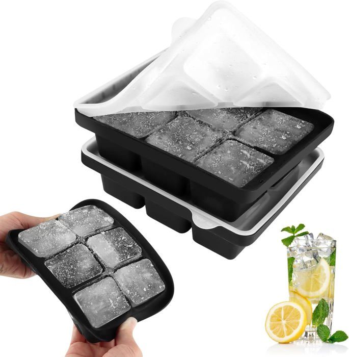 Silicone Alimentaire Qualité Bangp Grands Bacs à Glaçons Avec Couvercle, Lot De 2 Grands Moules à Glacons Moule Glaçons grands et cristallins: Chaque moule glacon crée 6 cavités généreuses; 2 glacons moul produisent 12 glaçons carrés de 5 cm (2 in). Ces glaçons restent d'une transparence remarquable et fondent lentement, offrant une fraîcheur prolongée sans dilution rapide, idéale pour sublimer vos boissons Lot De 2 Bacs À Glaçons En Silicone - Grands Compartiments Avec Matériau de qualité alimentaire : notre moule à glaçons en silicone est fabriqué en silicone de qualité alimentaire, sans BPA, facile à nettoyer, passe au micro-ondes et au réfrigérateur et résiste aux températures de -40 à 240 °C Bacs À Glaçons, Silicone À Libération Facile 36 Bacs À Glaçons À Grille... Idéal pour les fêtes, les festivals, les restaurants et la plage Grand bac à glaçons avec couvercle : ce moule à glaçons dispose d'un couvercle amovible qui empêche les glaçons d'être affectés par le goût des autres aliments dans le réfrigérateur. Démoulage facile des glaçons : le moule à glaçons est fabriqué en silicone souple et chaque cavité est conçue comme un compartiment séparé. Robuste et durable : ce moule à glaçons est fabriqué en silicone de haute qualité.