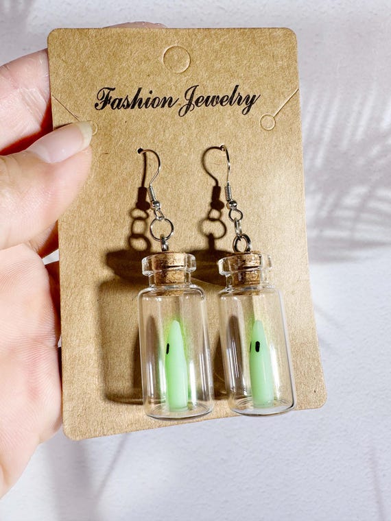 Accessoire Fête Horreur Adorables Boucles D'oreilles Fantômes Phosphorescentes Pour Halloween - France Boucles Bouteille Fantôme étoile Boucles d'oreilles phosphorescentes fantômes – Bijoux d'Halloween en acrylique - France Ensemble de colliers et boucles d'oreilles pendantes en forme de bouteille en verre fantôme lumineux d'Halloween, Kits de bijoux en alliage, platine, 400~500mm... Adoptez l'esprit de cette saison et améliorez votre style d'Halloween avec ces adorables accessoires Caractéristiques : Matériaux : verre + liège + résine., Poids : 5,6 g., Couleur : voir photo Informations sur la taille : ces jolies boucles d'oreilles fantôme magique sont livrées avec des pendentifs, mesurant 2,1 x 4,1 cm. Boucles d'oreilles lumineuses : les créateurs s'inspirent de l'atmosphère mystérieuse d'Halloween, où les fantômes dans la bouteille ressemblent à des créatures mystérieuses emprisonnées. Ces boucles d'oreilles veilleuse sont parfaites pour ceux qui veulent ajouter une touche de charme d'horreur à leur style. Le design lumineux rend les boucles d'oreilles extrêmement attrayantes à la tombée de la nuit, comme des étoiles mystérieuses scintillantes dans le ciel nocturne. Les fantômes utilisent des matériaux luminescents qui peuvent émettre une lumière enchanteresse dans l'obscurité. Les crochets d'oreille sont fabriqués en alliage, assurant qu'ils sont lisses, sans plomb, sans nickel, et ne provoquent pas d'allergies pour la plupart des gens. Spécification: Couleur: vert Matériau: fer recouvert de cuivre, verre, bouchon en kapok, résine Taille du produit: 2,7x1,1x1,1cm Détails du forfait: une...