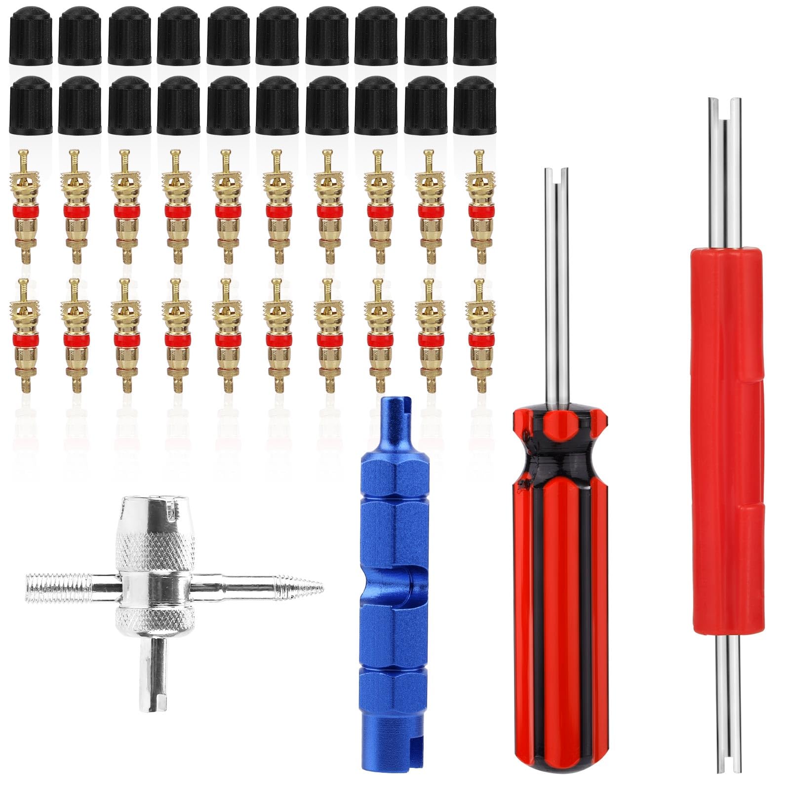 Demonte Obus Valve Kit D'outils Réparation Démonte Obus De Valve Double Et à Une Tête + 1 Outil De Valve 4 Voies + 14 Bouchon Valve Pneu Voiture + 20 Noyaux Valve Pour Remplacement Velo Moto Multifonction 4 en 1 : la tête multi-angle de l'outil 4 en 1 peut s'attaquer aux valves tenaces sur les voitures, camions, vélos et même motos. Plus besoin de jongler avec plusieurs outils Noyaux Bouchons Valves Remplacement Ensemble D'outils Pour Valves De Pneus Avec Clé De Valve Et Bouchons De Entretien Pression Pneus Bricolage Spécification : Couleur : rouge, jaune, bleu, argent, or Matériau : métal, plastique, alliage Taille du produit : comme montré sur l'image Détails du paquet : 1 x clé 4-en-1 1 x clé à tête unique 1 x clé multifonction pour noyau de valve 1 x clé à double tête 20 x noyaux de valve 20 x bouchons de valve Remarque : En raison de la mesure manuelle, la taille et le poids peuvent présenter une certaine erreur. Matériau produit: Fabriqué en métal, alliage et plastique à haute résistance, ces outils sont construits pour la durabilité et une excellente résistance à la pression. Ensemble d'outils pour valves de pneus avec Clé de valve et Bouchons de... En raison des différences entre les moniteurs, il peut y avoir une légère différence de couleur. Conception multifonction: Ce trousse à outils de tige de soupape de pneu 4 en 1 comprend à la fois des outils de suppression de noyau de soupape à double et simple, ce qui le rend parfait pour diverses tâches de réparation de tige de soupape. Idéal pour les propriétaires de voitures à utiliser à la maison ou en cas d'urgence sur la route. Retirez et installez facilement les noyaux de soupape pour maintenir une pression optimale des pneus.