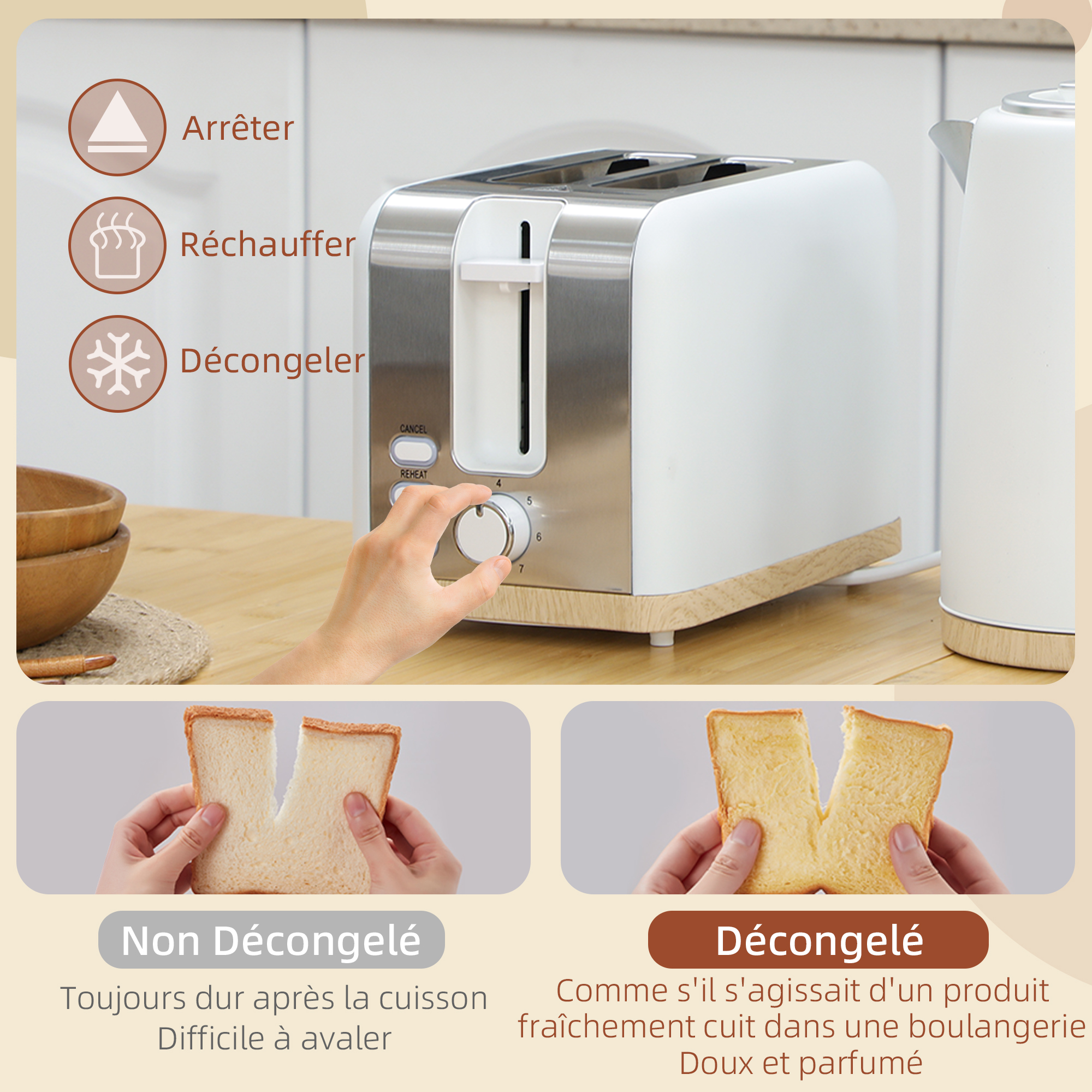 Wiltal Ensemble De Bouilloire Grille-pain, Bouilloire En Acier Inoxydable 2200 W Chauffage Rapide Grille Pain Avec Grille Rechauffe Viennoiseries Pour Chauffer Tous Les Types De Pain Vert Retro Fi Caractéristiques:● Préparez 7 tasses rapidement avec la bouilloire électrique 2200W, parfaite pour vos matins pressés● L'ensemble bouilloire et grille-pain équipé du thermostat Strix assure sécurité et contrôle précis de la température● Le grille-pain possède 4 fentes, double contrôle, 7 niveaux de brunissage et fonctions décongélation, réchauffage, annulation● Le boîtier inox du grille-pain offre facilité de nettoyage grâce au filtre anti-calcaire et au plateau ramasse-miettes amovible● La bouilloire pivotante à 360° avec rangement du cordon et le volume d'eau visible rend l'utilisation plus pratique● La finition blanche nervurée et accents argentés font de cet ensemble bouilloire et grille-pain un atout design dans votre cuisineSpécifications:● Couleurs : blanc, argenté● Matériaux : acier inoxydable, acier, PP● Dim. Bouilloire 1,7L 2200W Thermostat Strix HOMCOM Ensemble Bouilloire Et Grille-pain En Inox 2200 W Et 1 Grille-pain 4 Tranches Inox Le grille-pain à quatre fentes propose sept niveaux de dorure : obtenez la perfection croustillante adaptée aux goûts de chacun. Altus AL 728 I Inox 2200 W 1.7 lt Çelik Kettle VEVOR Grille-Pain a Convoyeur Commercial 300 Tranche par Heure Toaster... STYLE MODERNE ET HARMONIEUX : L'ensemble bouilloire et grille-pain en blanc et acier inoxydable avec détails argentés s'intègre parfaitement dans toutes les cuisines contemporaines, idéal comme cadeau pour une pendaison de crémaillère, un mariage ou de nouveaux propriétaires fente du grille-pain : 13,5L x 3,5l x 13,5H cm (simple)● Capacité de la bouilloire : 1,7 L● Puissance de la bouilloire : 1850-2200W● Puissance du grille-pain : 1560-1860W● Tension : AC 220-240V 50-60Hz● Longueur du cordon : 0,7 m● Réf. SÉCURITÉ AVANCÉE AVEC THERMOSTAT STRIX : Dotée d'un thermostat Strix britannique, la bouilloire inox assure une température précise et une sécurité optimale, incluant arrêt automatique, protection contre la chauffe à vide et la surchauffe Sa bouilloire 1,7L équipée d’un thermostat Strix assure une ébullition sûre et rapide, idéale pour la famille ou le bureau. Contenu de L'Emballage: 1 x Bouilloire Électrique; 1 x Grille-Pain; 1 x Manuel Descriptions Longues:Commencez chaque matin en toute tranquillité avec cet ensemble bouilloire et grille-pain HOMCOM assorti.