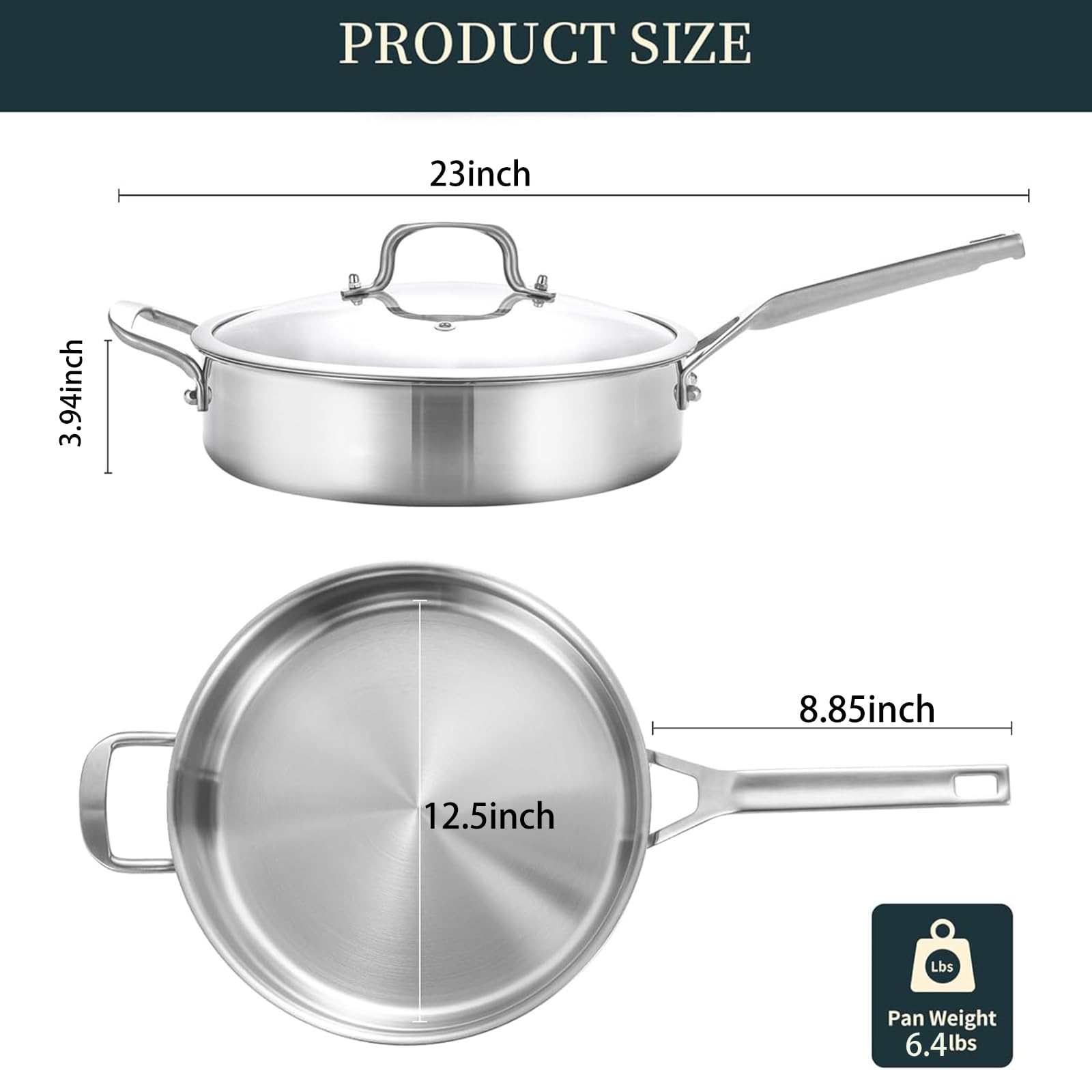 Casserole Et Poele Inox Sauteuse Triple épaisseur En Acier Inoxydable De 7 Litres, 30,5 Cm De Profondeur Avec Couvercles Sauteuse Inox WECOOK! PRO Poêle Acier Inoxydable 18/10 26 cm – Compatible Induction – Base Triple Épaisseur – Manche Ergonomique Riveté – Four 200°C – Lave-vaisselle – Résistante DELARLOCHEF Sauteuse 30 cm à bord haut - Hauteur : 9,8 cm - 6,5 l - En acier inoxydable à 3 couches - Avec couvercle - Sans PTFE ni PFOA - Compatible avec... Il est recommandé de cuisiner à feu moyen à doux. Sécurité et santé : la couche intérieure en acier inoxydable 18/10 ne réagit pas avec les aliments et préserve ainsi le goût naturel des aliments. La couche centrale en aluminium permet une répartition rapide et uniforme de la chaleur dans toute la casserole. Construction en trois étapes : étant donné que la conductivité thermique de la poêle est très élevée, veuillez ne pas chauffer lorsque la poêle est vide. Utilisation universelle : la couche extérieure en acier inoxydable 18/0 est compatible avec tous les types de cuisinières courantes, y compris les cuisinières à gaz, l'induction, le feu ouvert et le four (jusqu'à 400 °C). Utilisation polyvalente : cette poêle à frire est idéale pour ragoûter, cuire et frire de la viande, du poisson, des légumes, etc. Elle est parfaite pour les ménages et les cuisines professionnelles. Sauteuse en aluminium press pour une diffusion rapide et optimale de la chaleur. Nous comparons pour vous sauteuses 30 cm de SENSARTE, RÖSLE, Tefal et de nombreuses autres marques